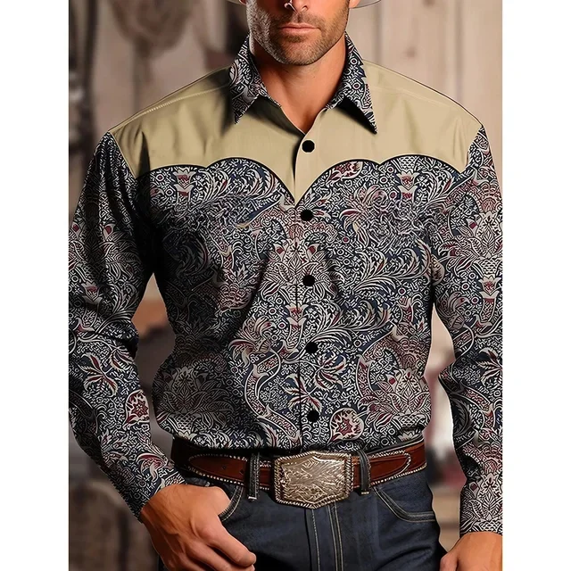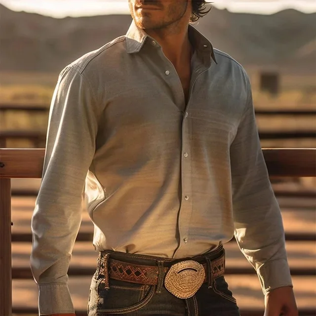 Men's Shirt Yellowstone Western Denim Shirt Elegant patchwork vintage men's lape