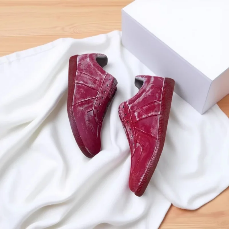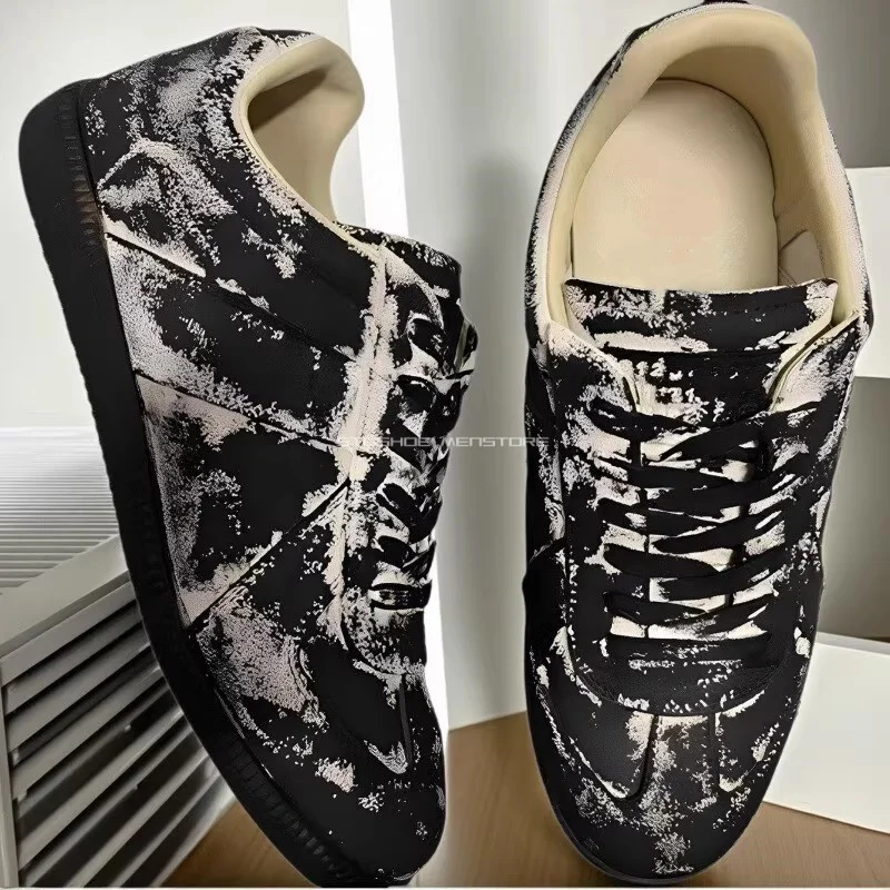 Men's Shoes Casual Sneakers New Fashion Coating Graffiti Low-Top Casual Single Shoes Large Size Patent Leather Sports Shoes