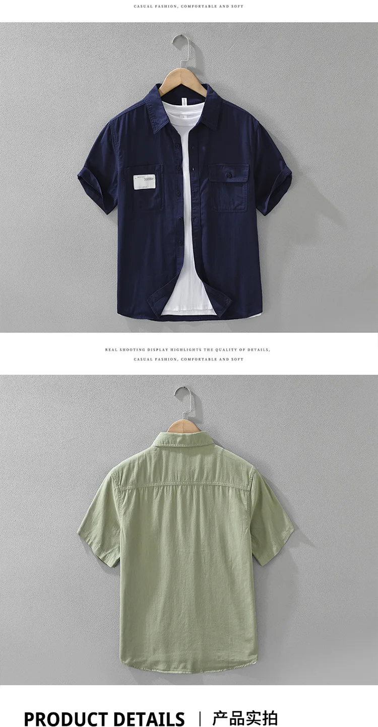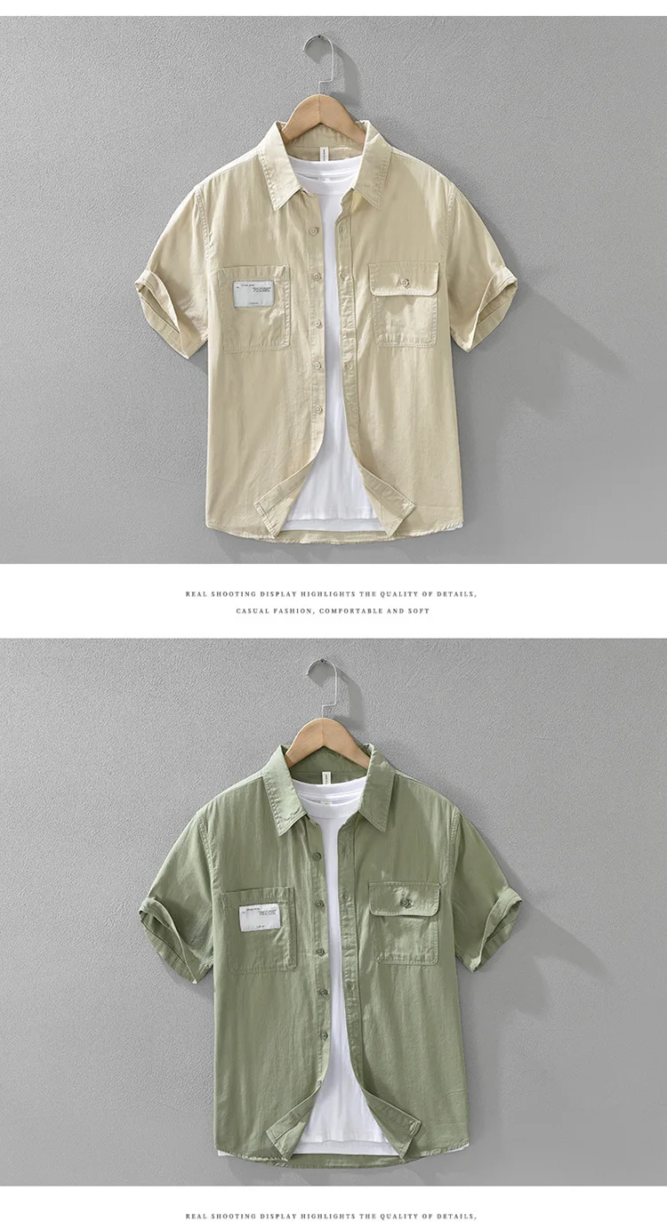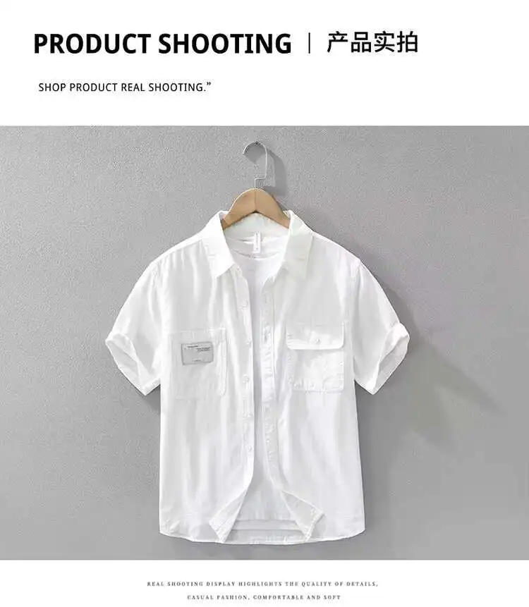 Men's Short Sleeve Cargo Shirt Streetwear Summer Loose Fit Workwear Shirt with Chest Pocket Breathable Cotton Daily Outfits Tops