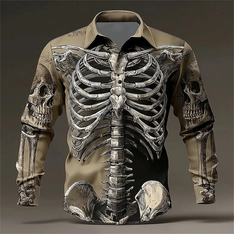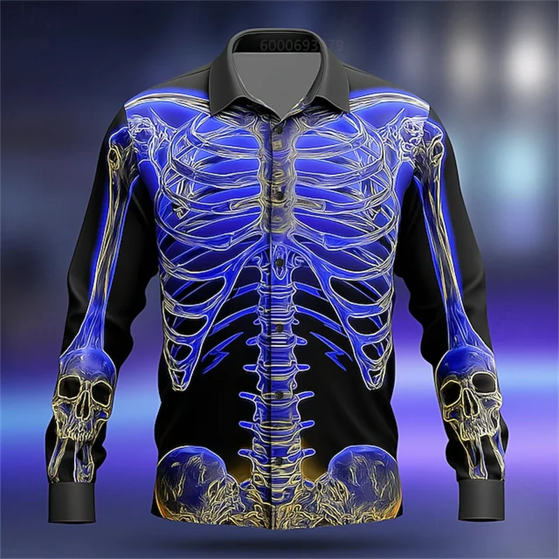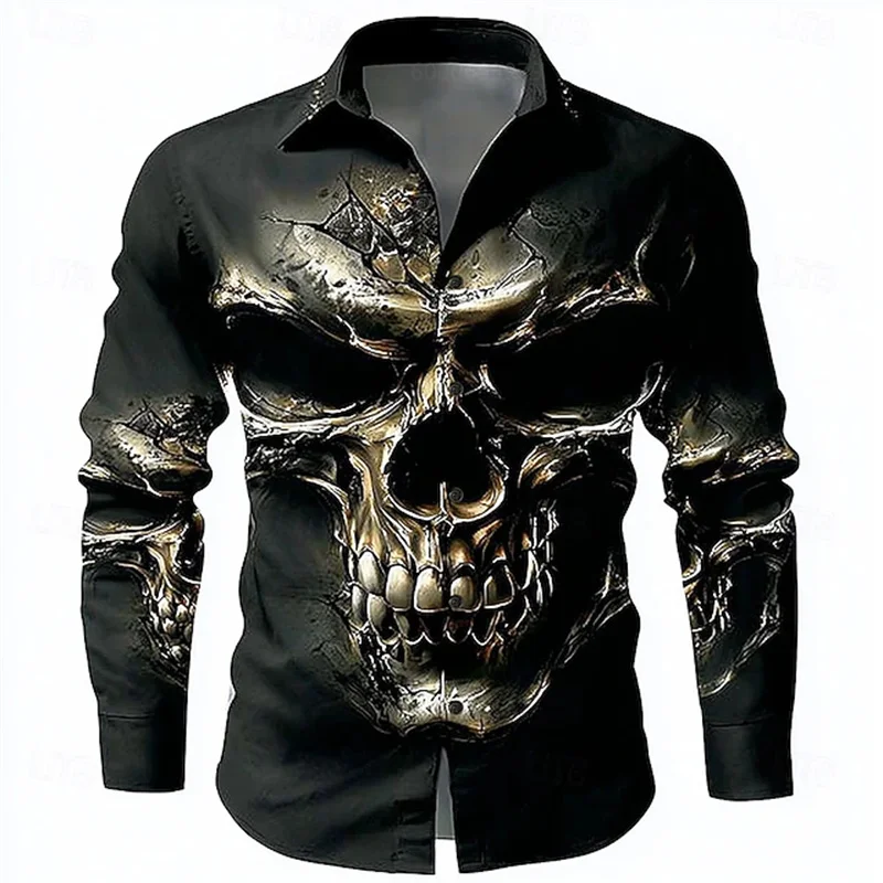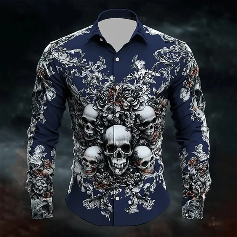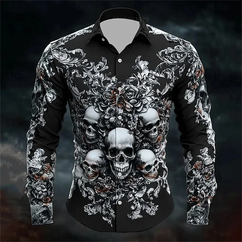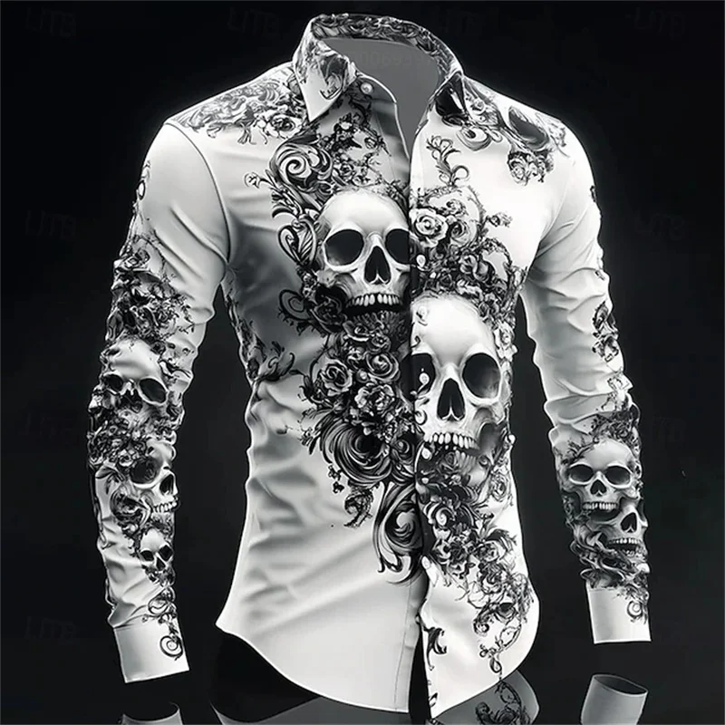 Men's Skull Day of the Dead Rose Shirt Casual Formal Button Shirt Long Sleeve Dark Punk Gothic Style Holiday Lapel Shirt White