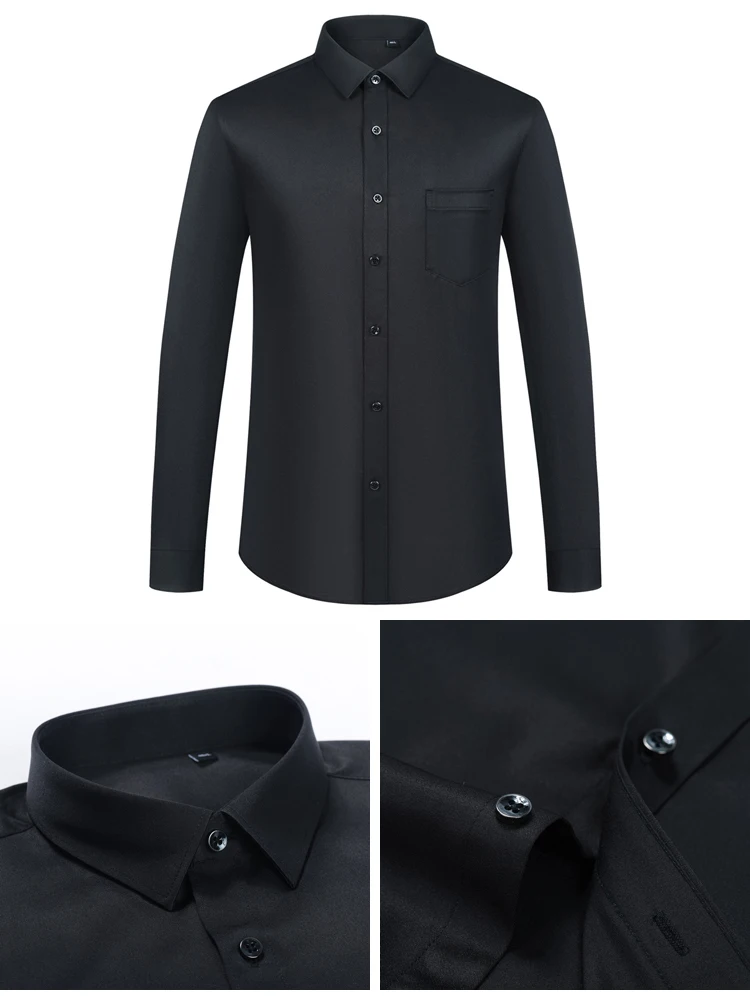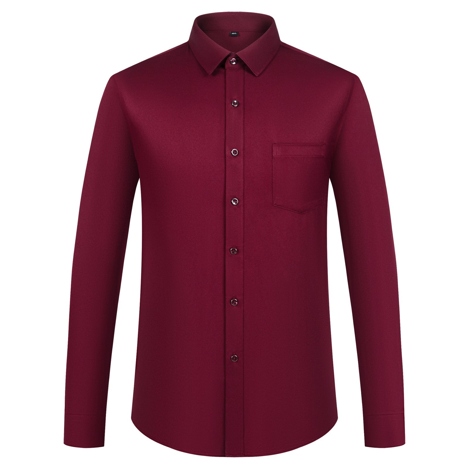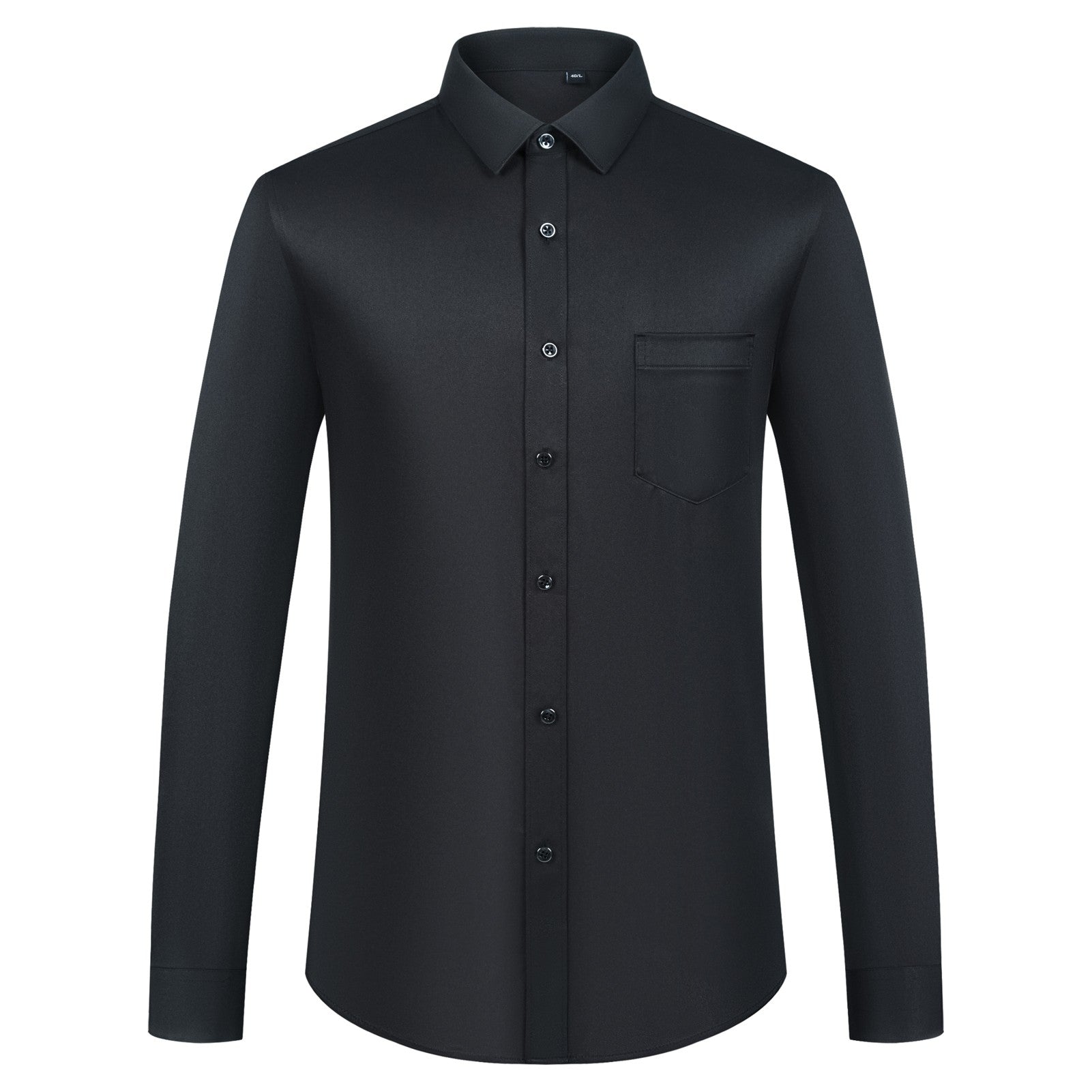 Men's Sleek Stretch Long Sleeve Button Up Shirts with Chest Pocket, Solid Color Formal Business Wrinkle Free Menswear Clothing