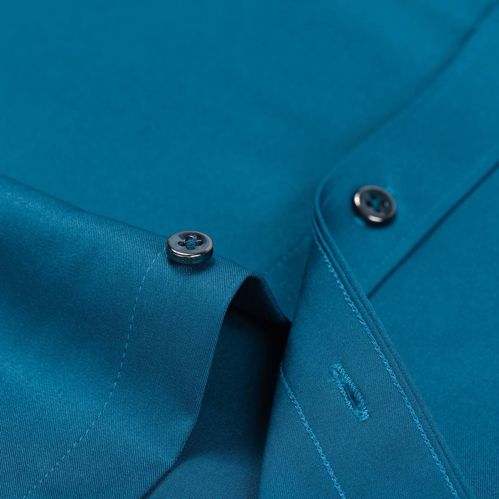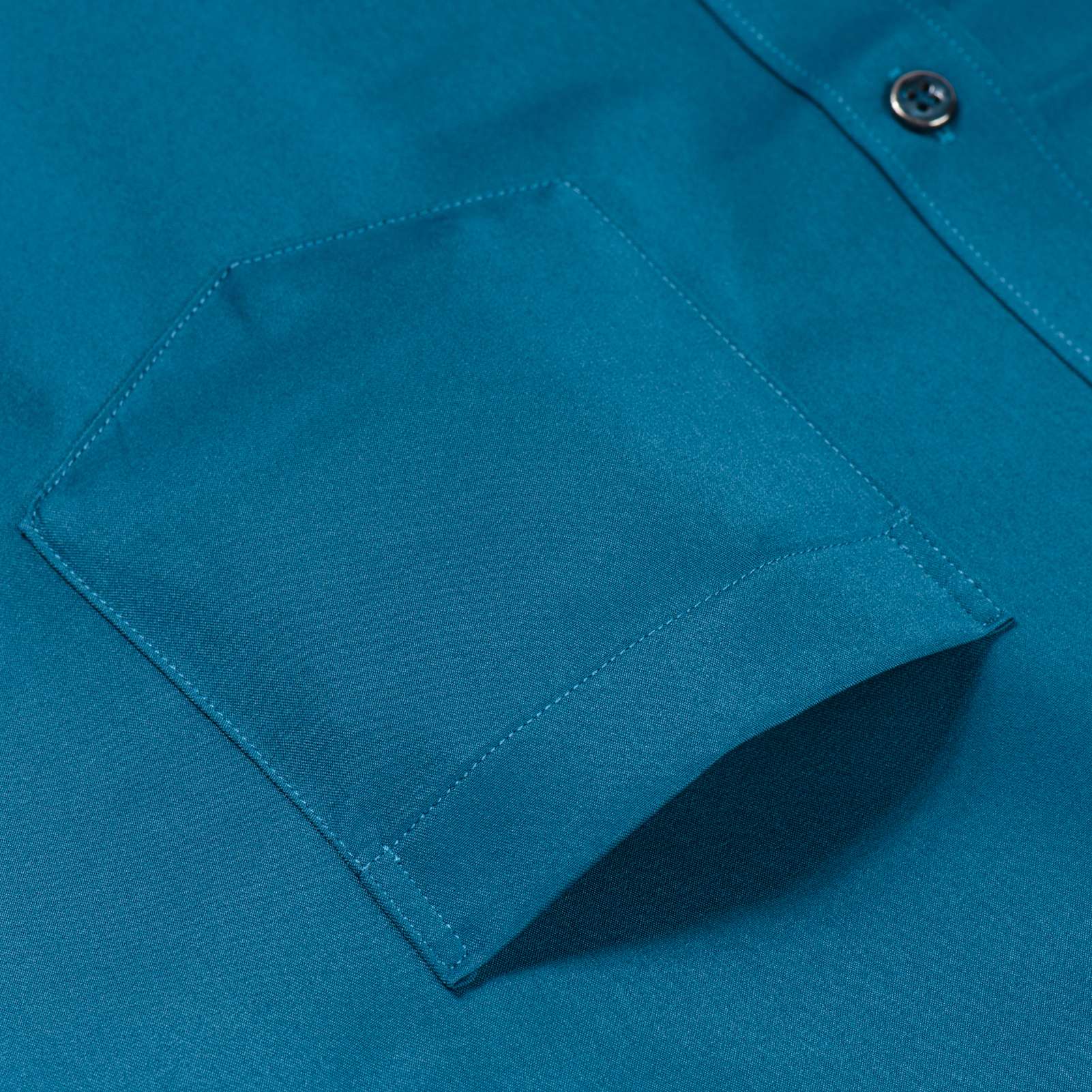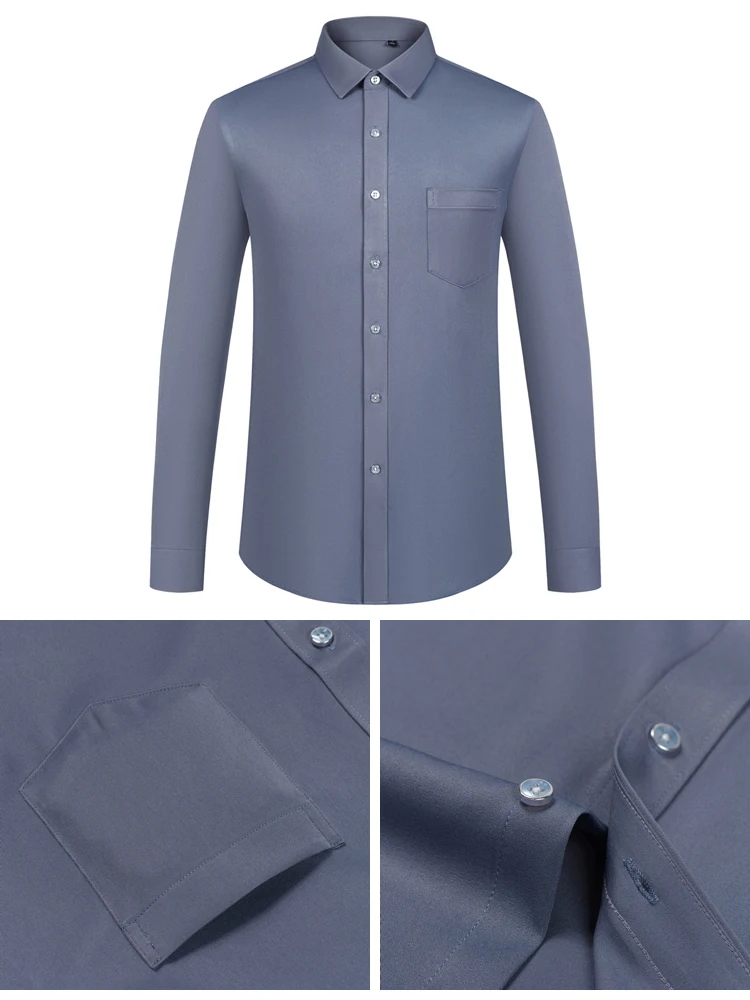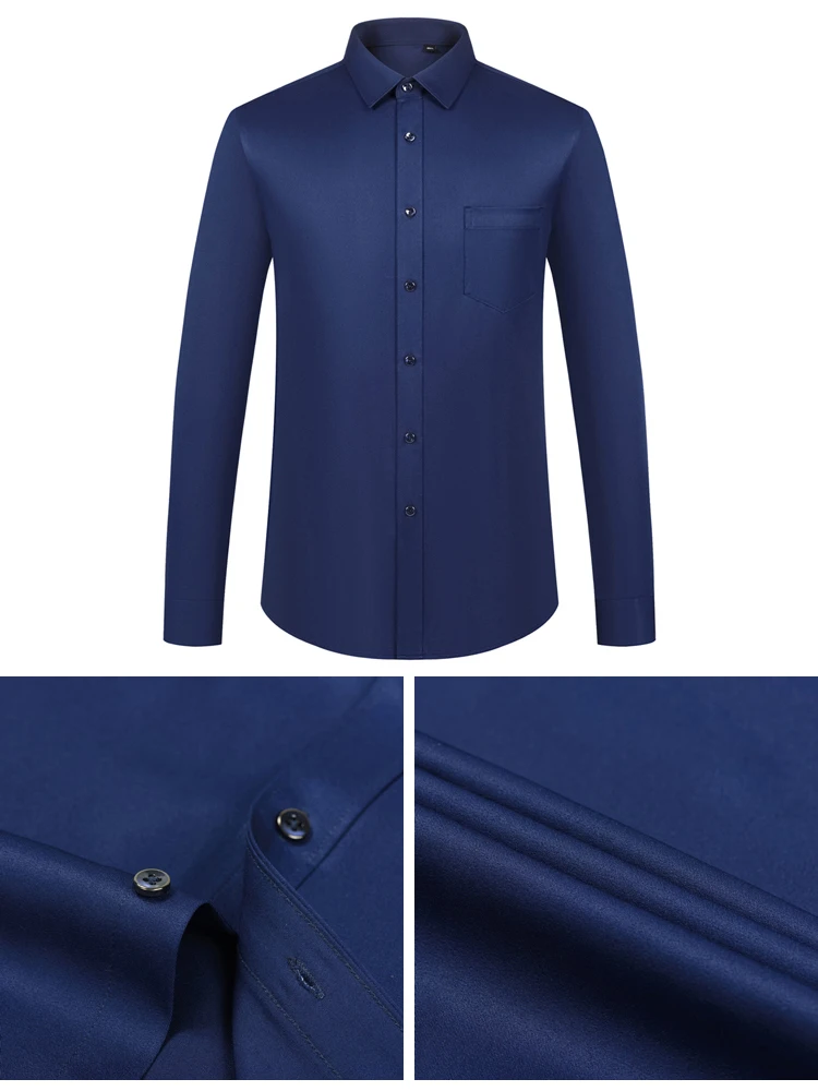 Men's Sleek Stretch Long Sleeve Button Up Shirts with Chest Pocket, Solid Color Formal Business Wrinkle Free Menswear Clothing