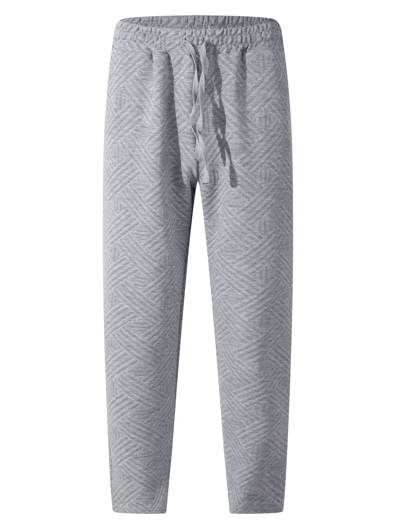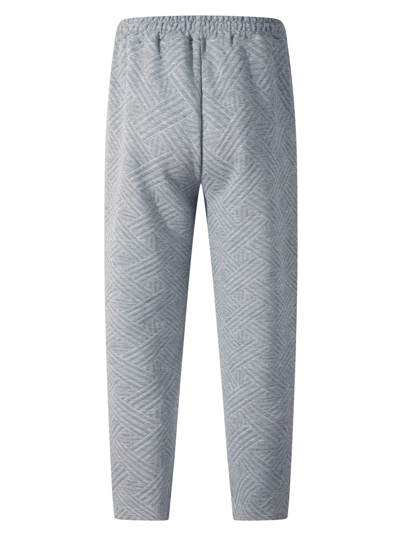 Men's Sport Fitness Breathable Casual Pants, Fashionable Jacquard Stretch Waistband Street Pants, Solid Color Loose Straight Pan