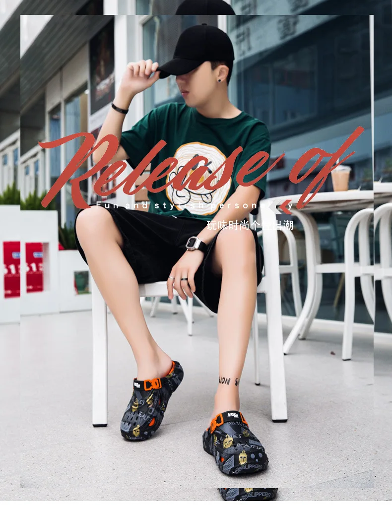 Men's Sports Sandals Eva Light Soft Comfortable Men's Beach Sandals Fashion Platform Buckle Slip-on Graffiti Slippers for Men