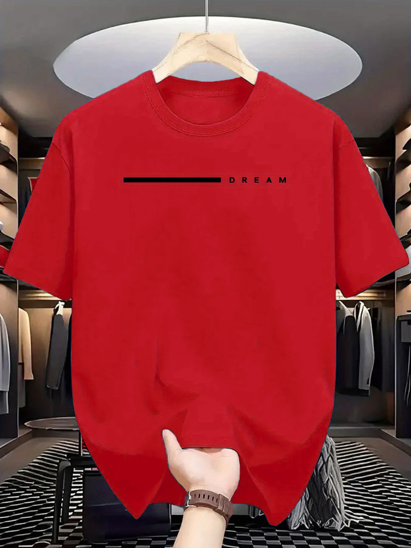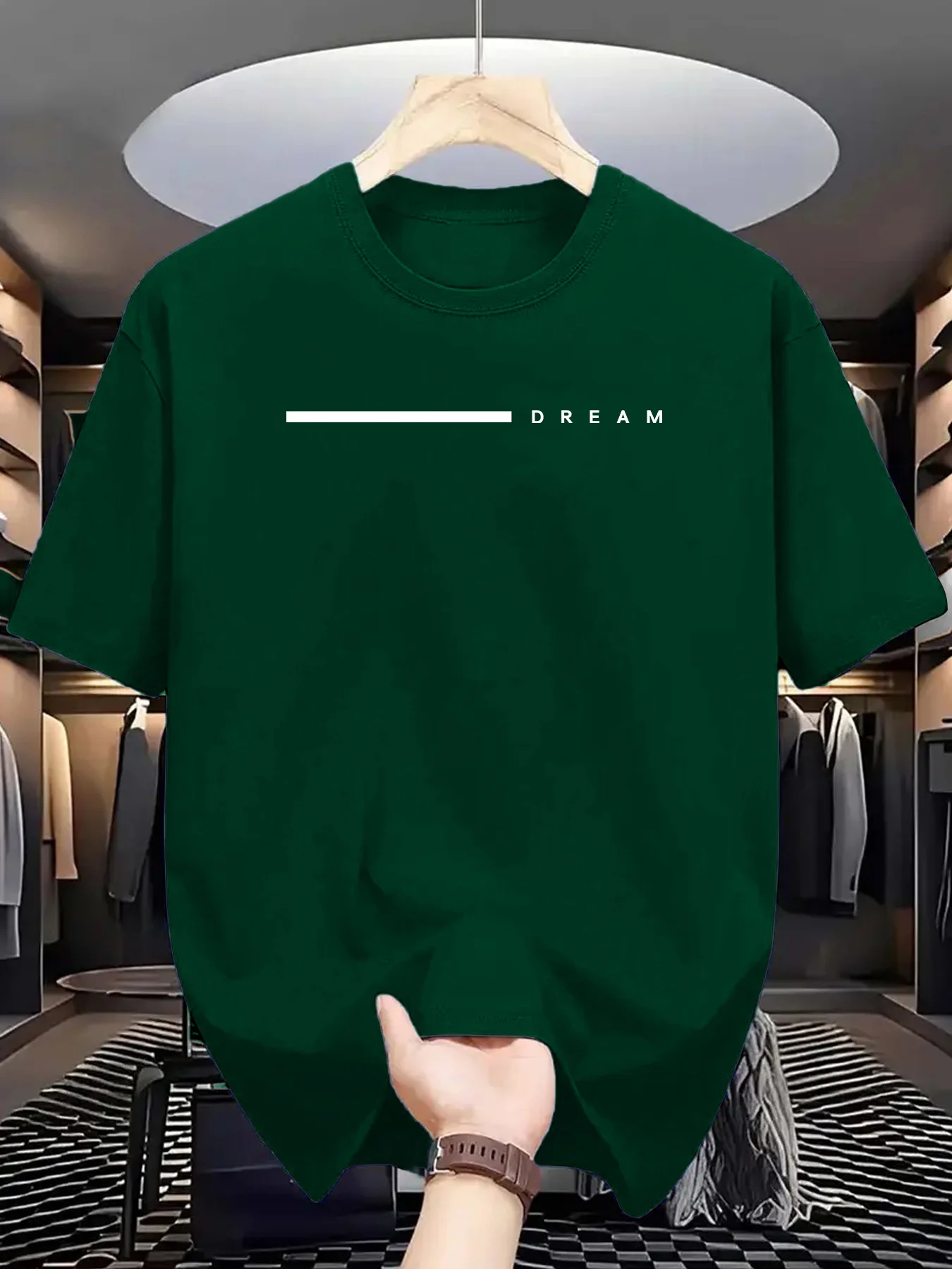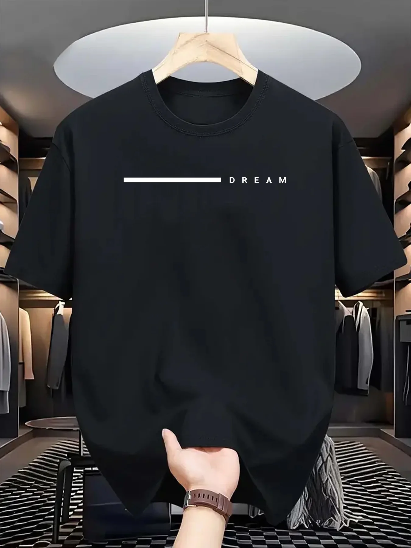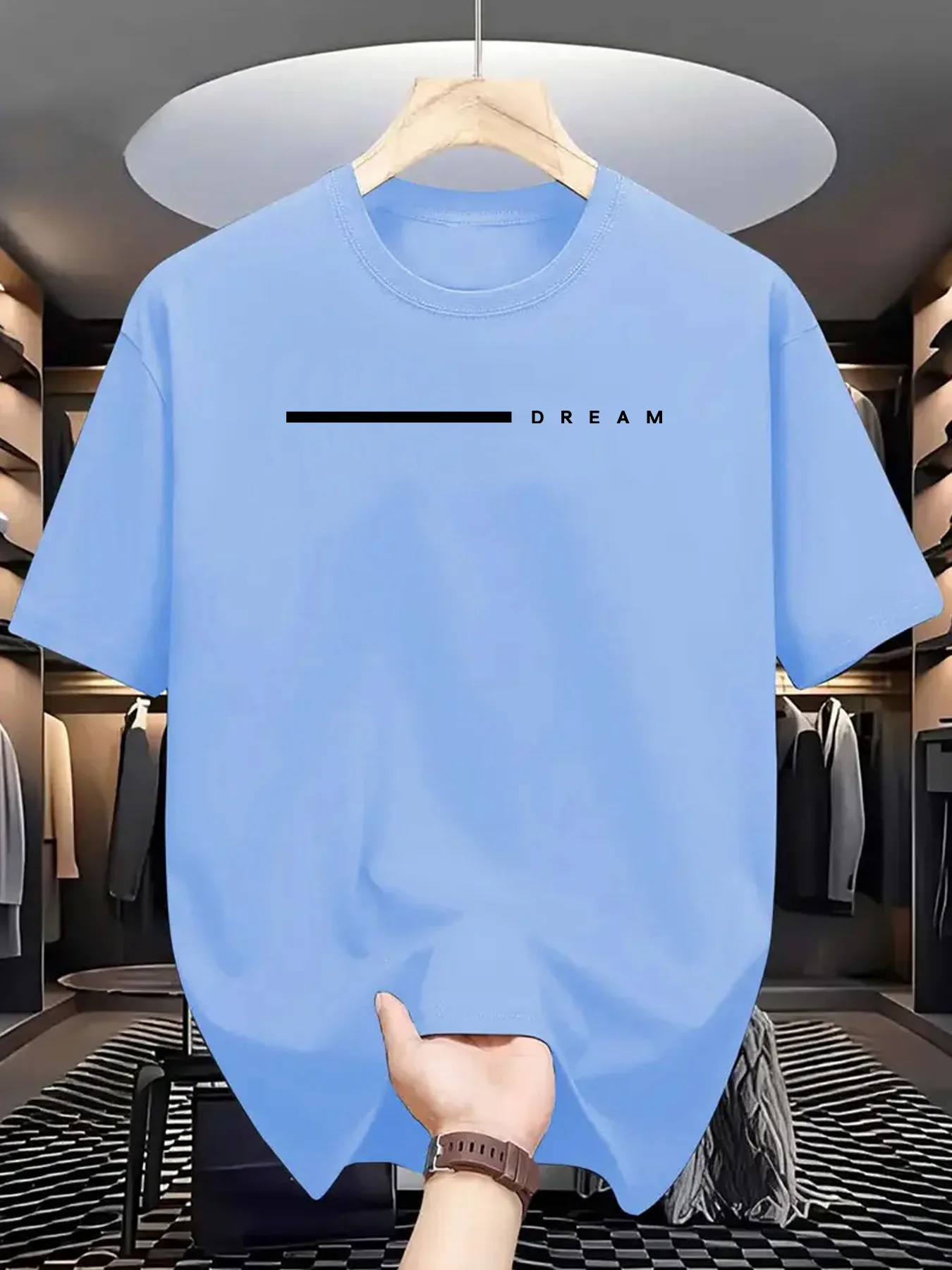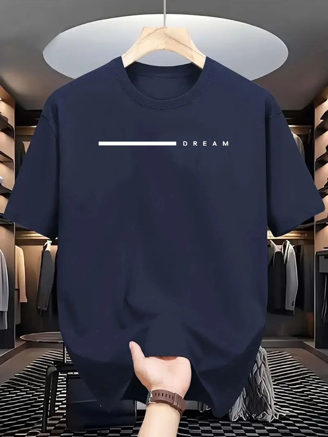 Men's summer 100 cotton fashionable casual loose plus size dream letter printed sports round neck short sleeved T-shirt top