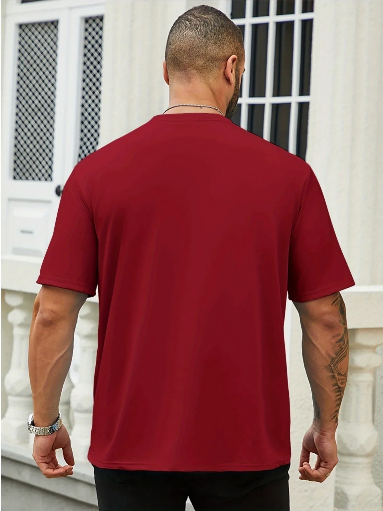 Men's summer 100% pure cotton fashionable casual sports wide pine pattern printed sports round neck short sleeved T-shirt top