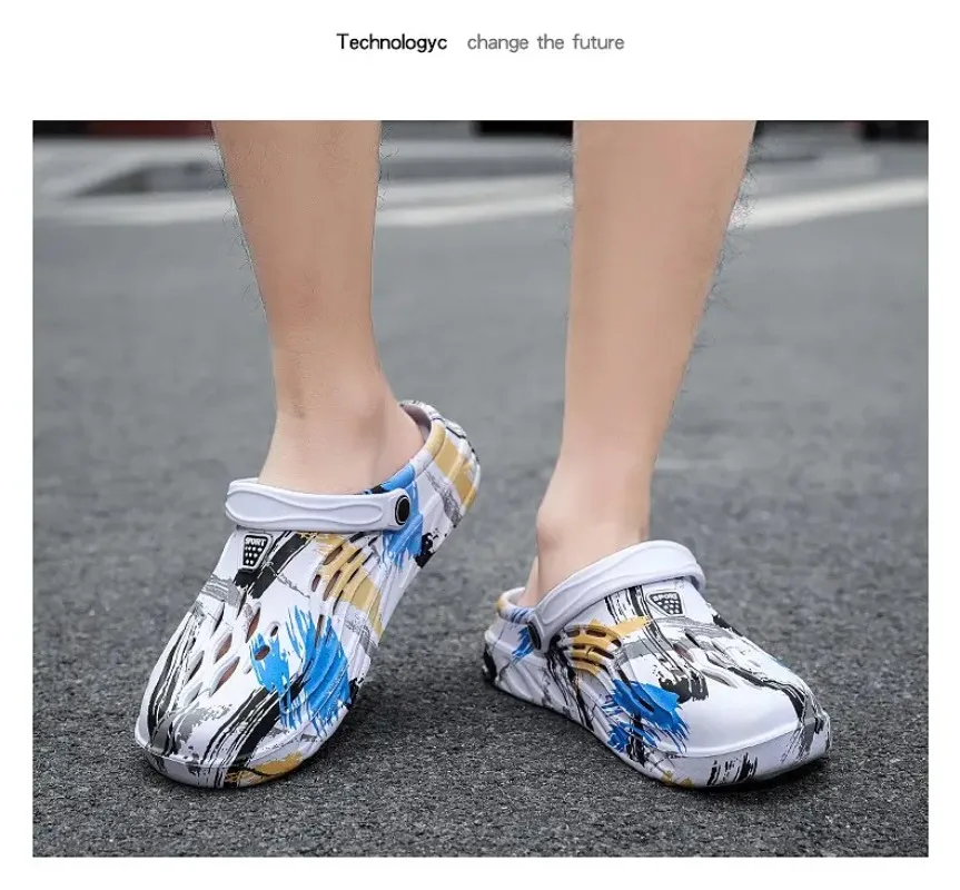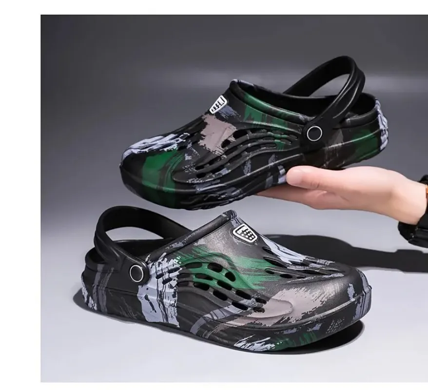 Men's Summer Camouflage Graffiti Sandals Garden Clogs Shoes Men Outdoor Beach Anti-skid Slippers Indoor Home Shoe big size 45-49