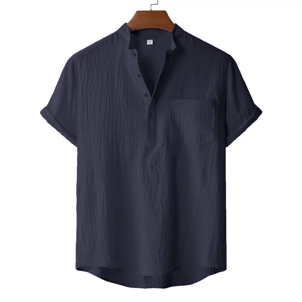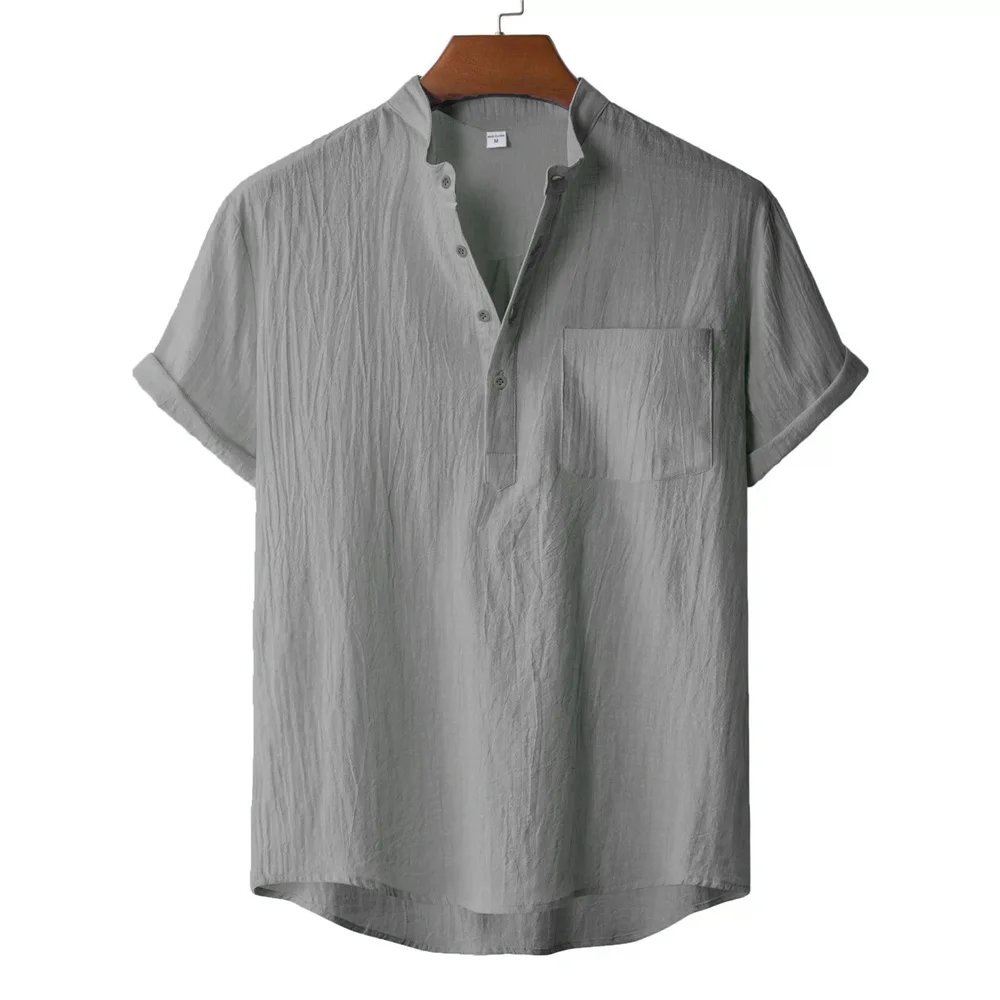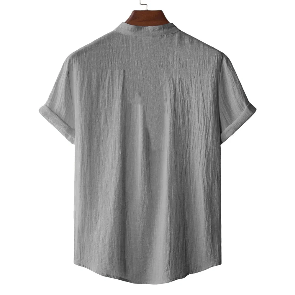 Men's Summer Cotton Linen T-shirt Beach Style Short SLeeve Henley Neck Vacation Hawaii Casual Lightweight Breathable Cozy Tops