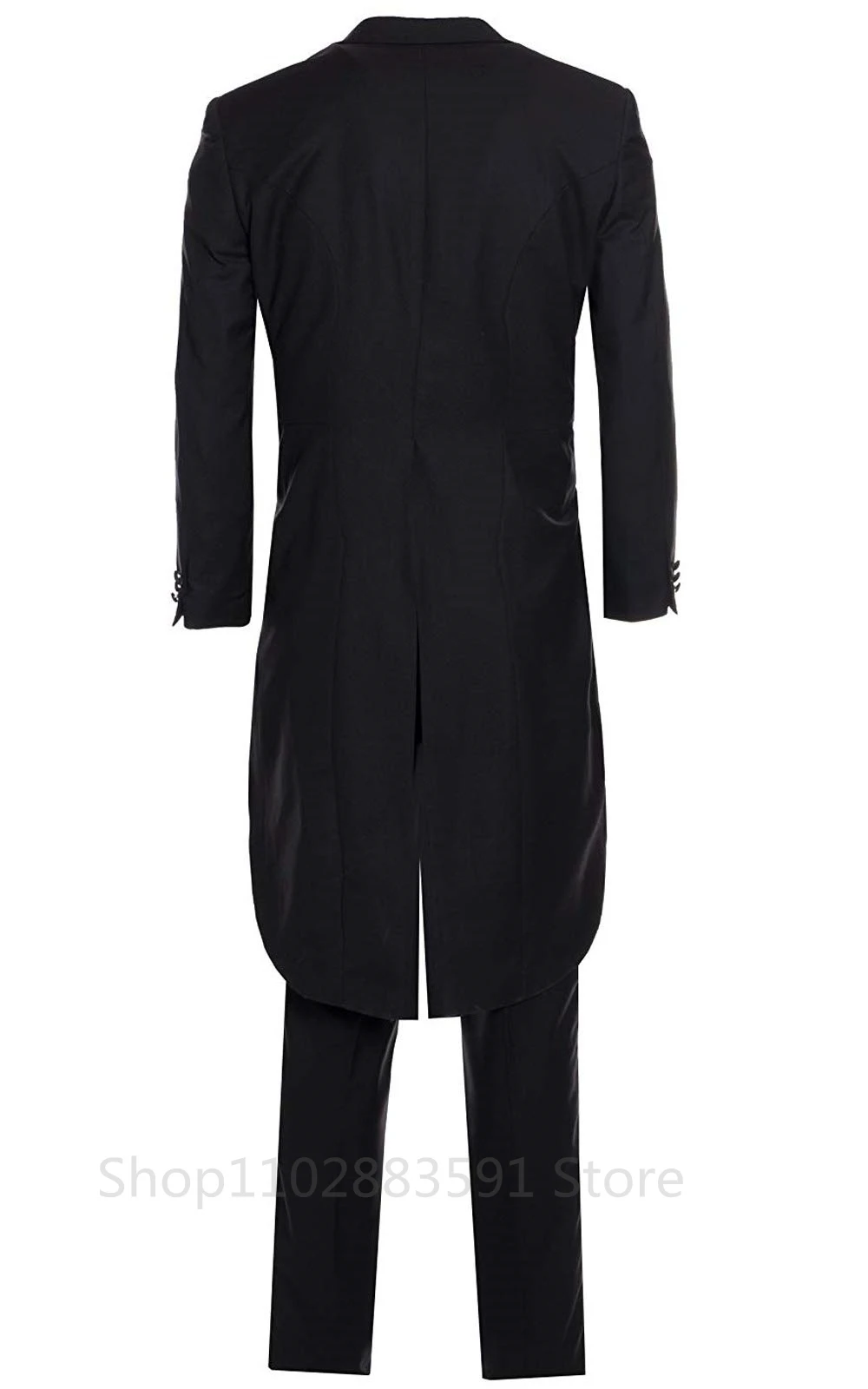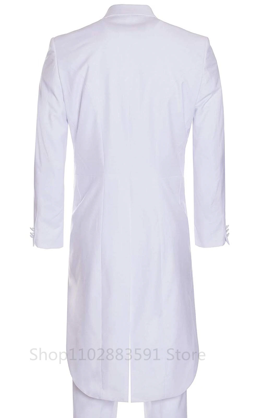 Mens Tuxedo Tailcoat Formal Dress Suits Swallow Tail Coat Black White Male Jacket Pants Party Wedding Dance Magic Performance