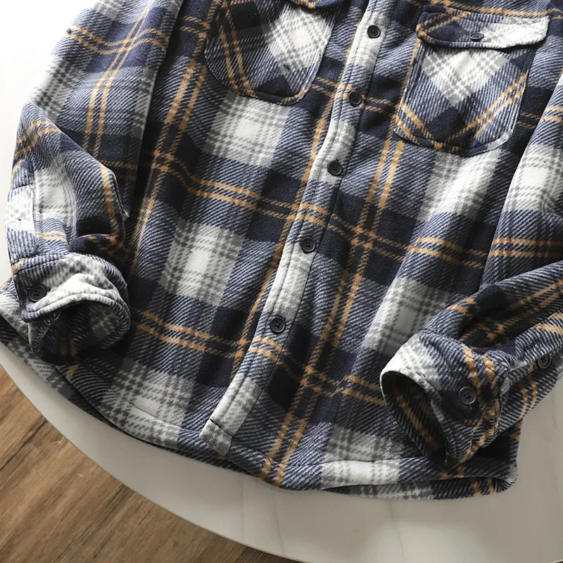 Mens Winter Fleece Linend Warm Plaid Shirt Jacket Casual Long Sleeve Flannel Checked Shirt Men Western Cowboy Button Up Tops