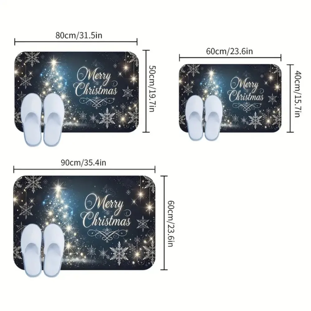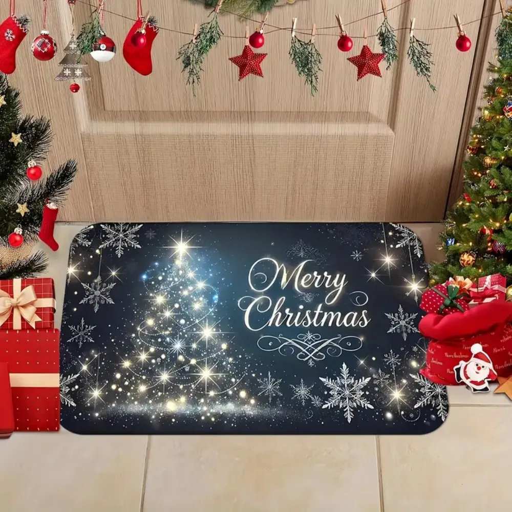 Merry Christmas Blue Star Snowflake Welcome Mat Bathroom Living Room Bedroom Kitchen Office Holiday Christmas Decoration Carpet