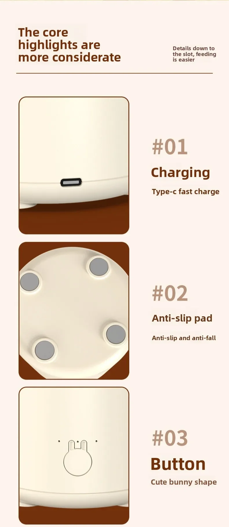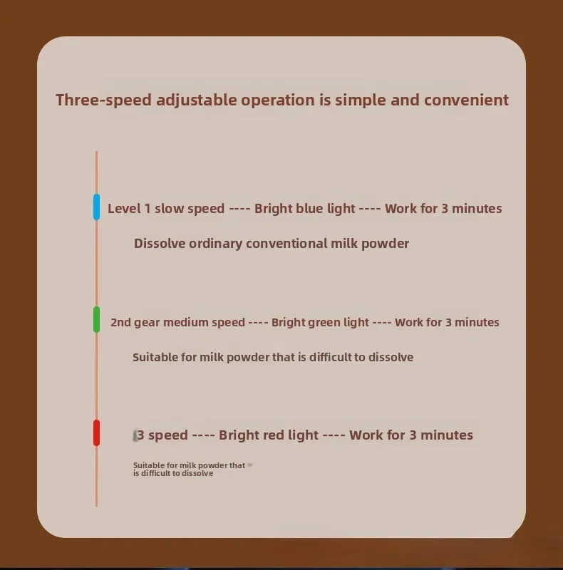 Three-speed Settings: Suitable for different ingredients such as milk powder and goat milk powder. It ensures the mixture is smooth without particles, fully dissolved and free from sticking to the bottle wall. It also reduces air bubbles to prevent flatulence.
