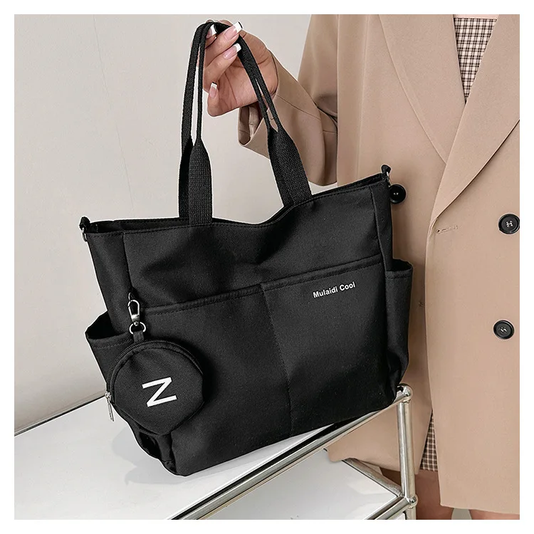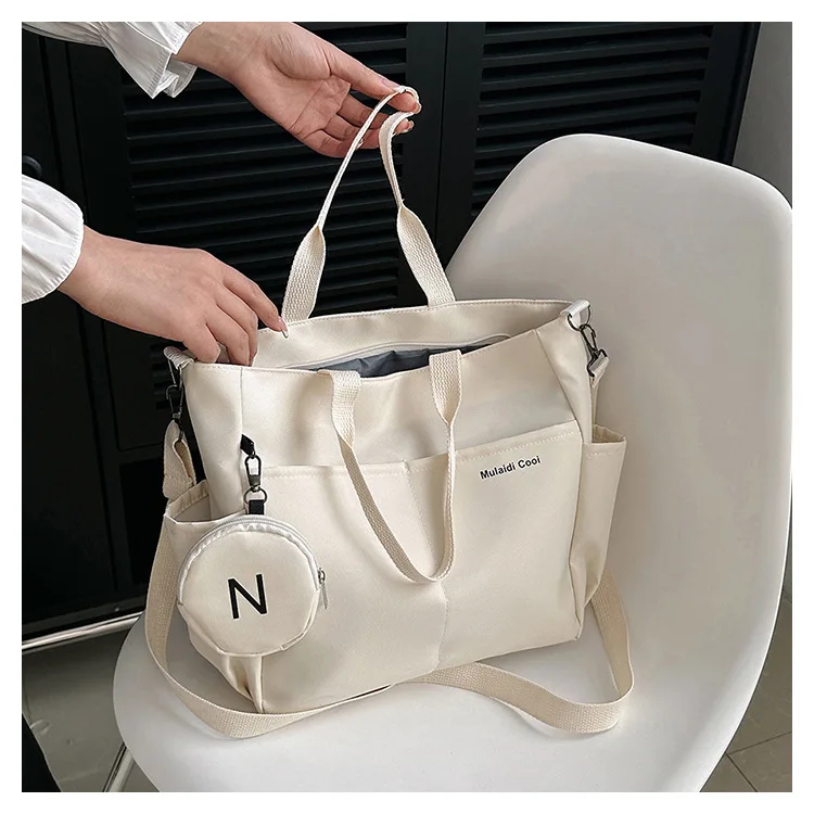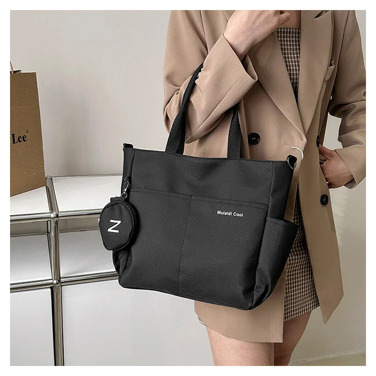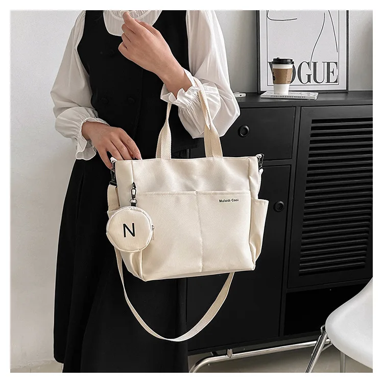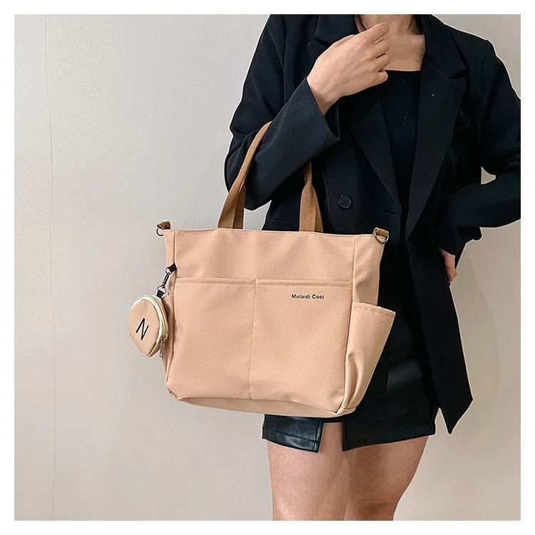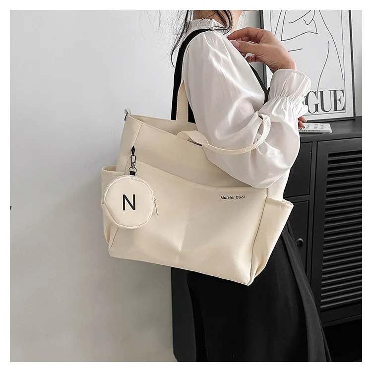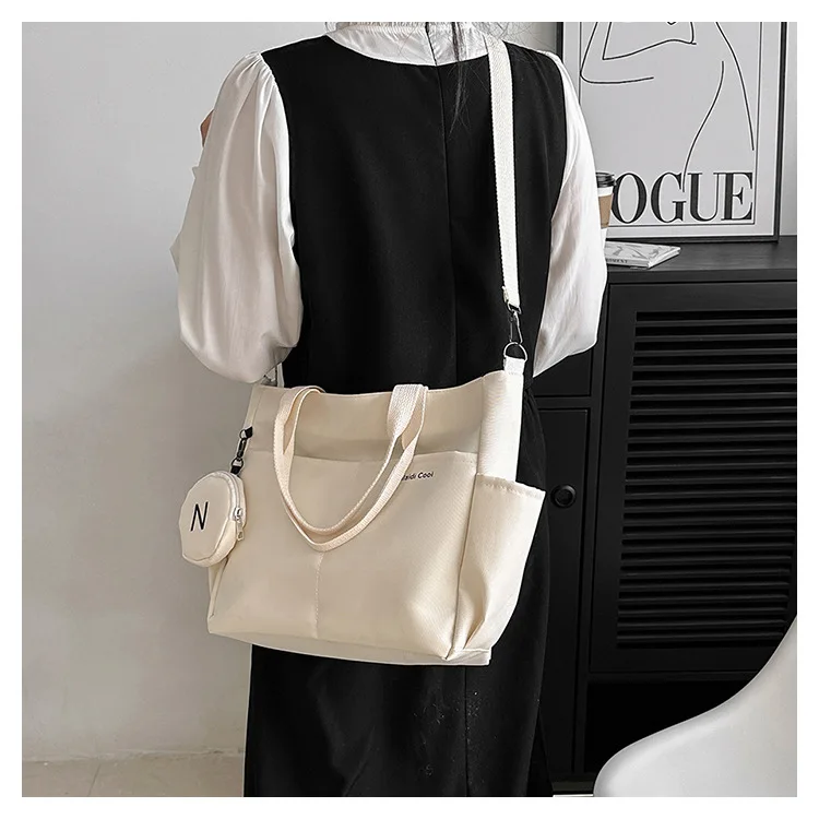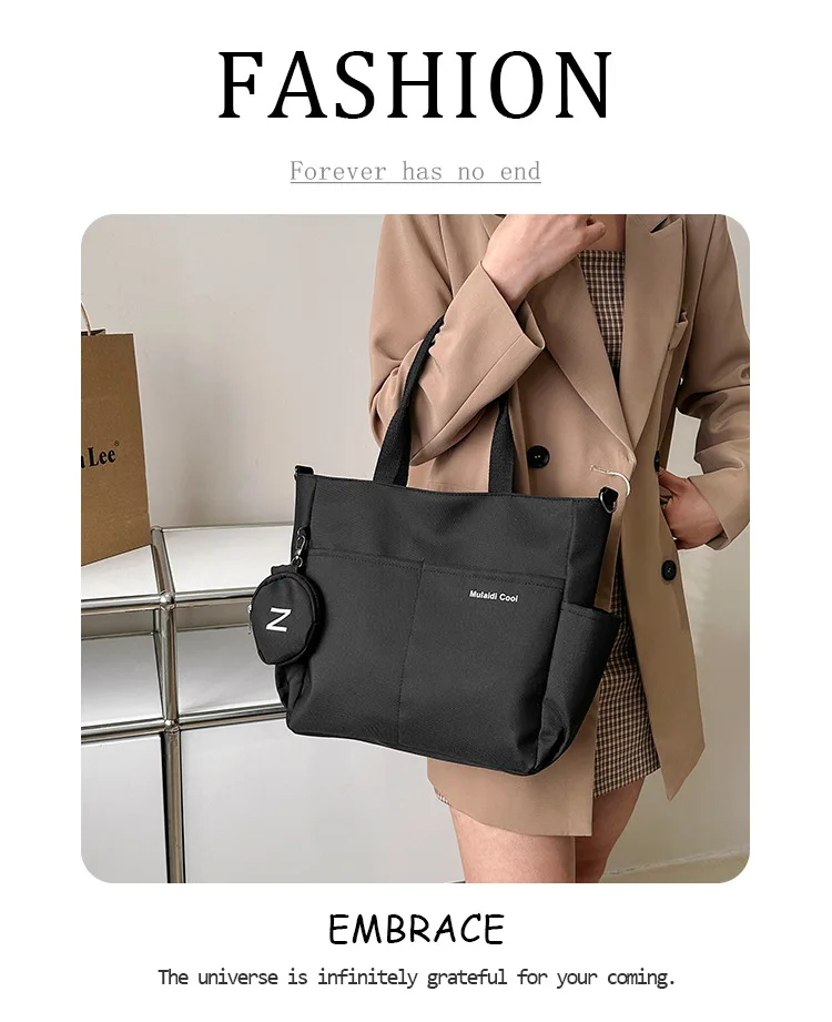 Minimalist Nylon Tote Bag, Oxford Waterproof Handbag Shoulder Crossbody Bag with Pocket, Effortless Style for Women Daily Errand