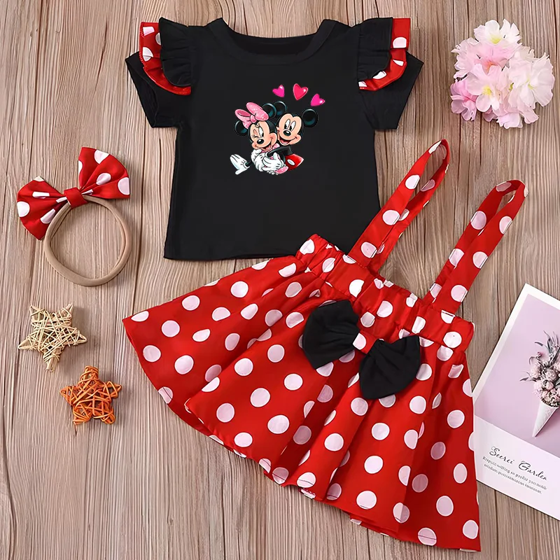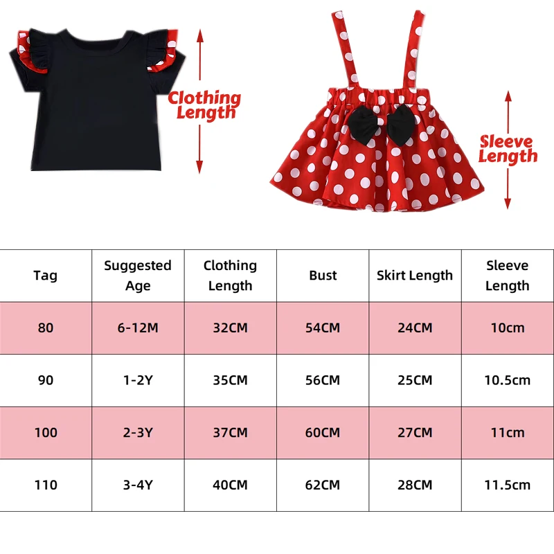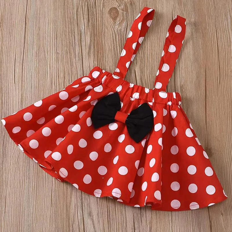 Minnie Mouse Girl Set Children Dress Baby Clothing Set Summer Birthday Costume Polka Dot Suspender Skirt Bow Headband skirt suit