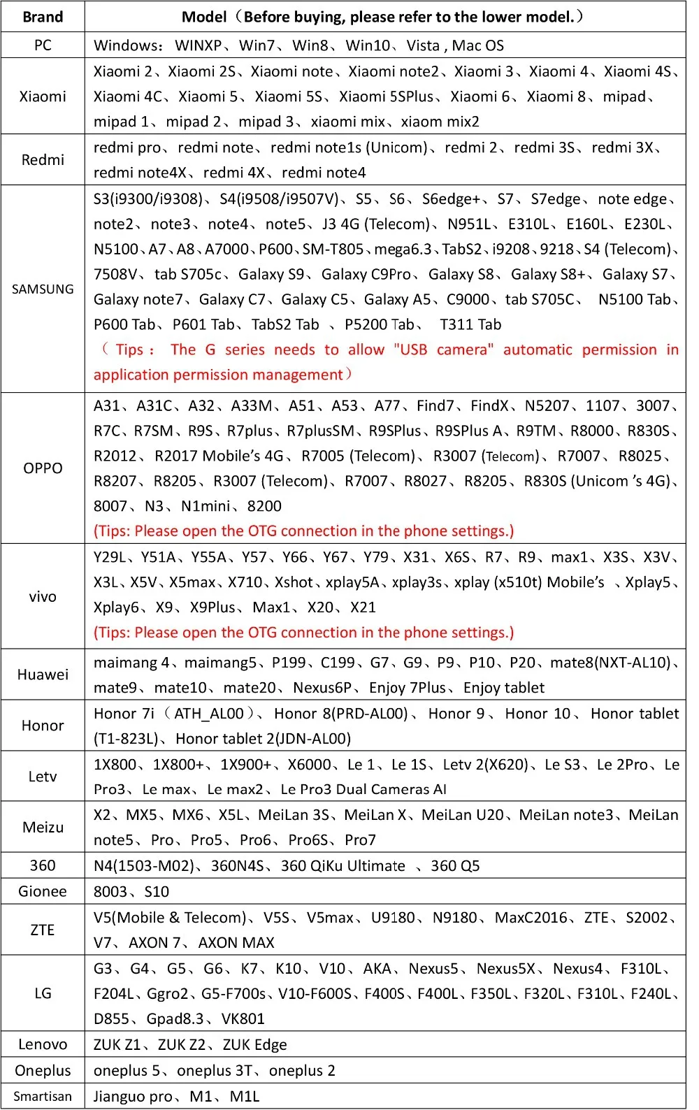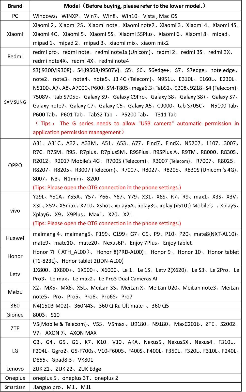 Note:Only works for Android 4.0 system phone, does Not support for iOS system;for Android Phone, must support OTG function, and must support to connect external camera.(Almost all recently version for android device have this function)
