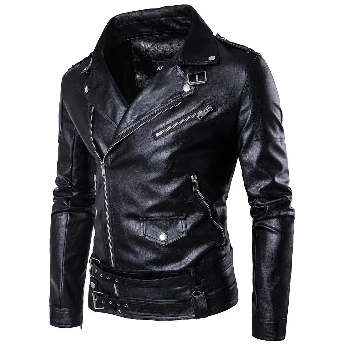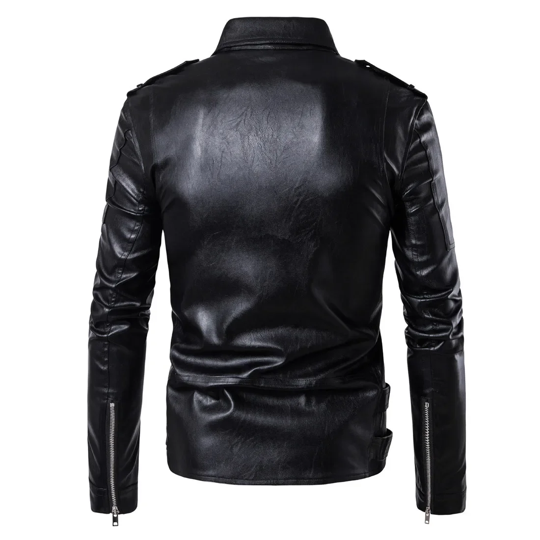 Motorcycle Slim Leather Jacket Men's Leather Jacket British Fashion Men's PU Leather Jacket mens solid color leather jackets