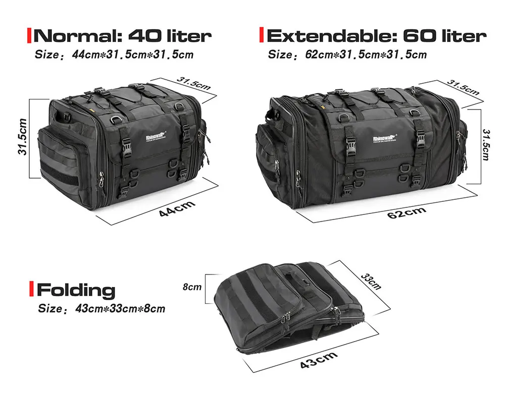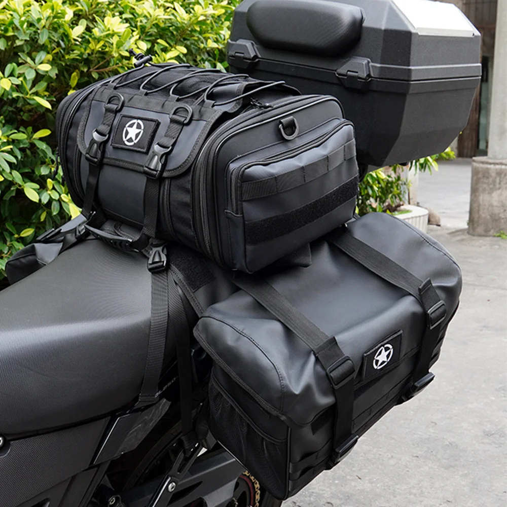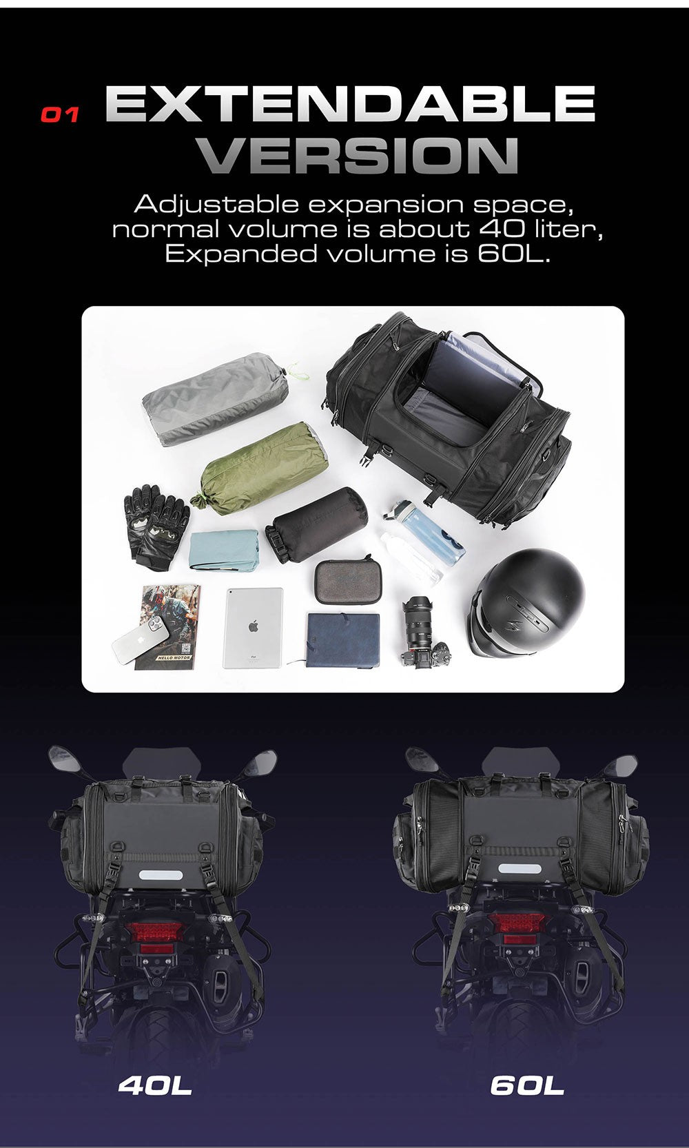 Motorcycle Tail Bag Waterproof 20L-60L Expandable Back Seat Saddle Bag Luggage Pannier Motorcycle Accessories Rider Backpack