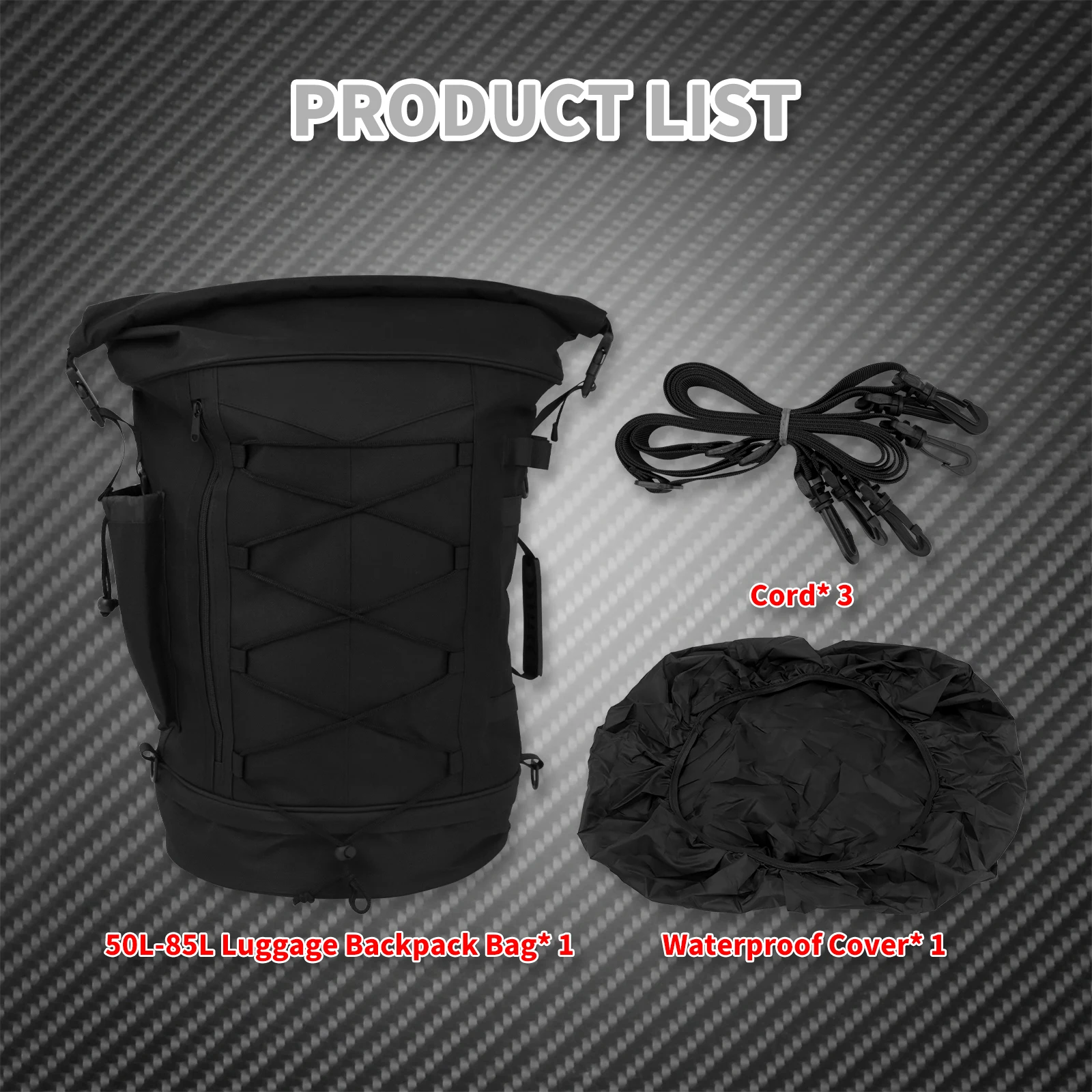 [Expandable]-The Normal capacity is 50L and when fully expanded This motorcycle sissy bar backpack Capacity is 85L. Perfect size for a whole family short ride or personal long ride.