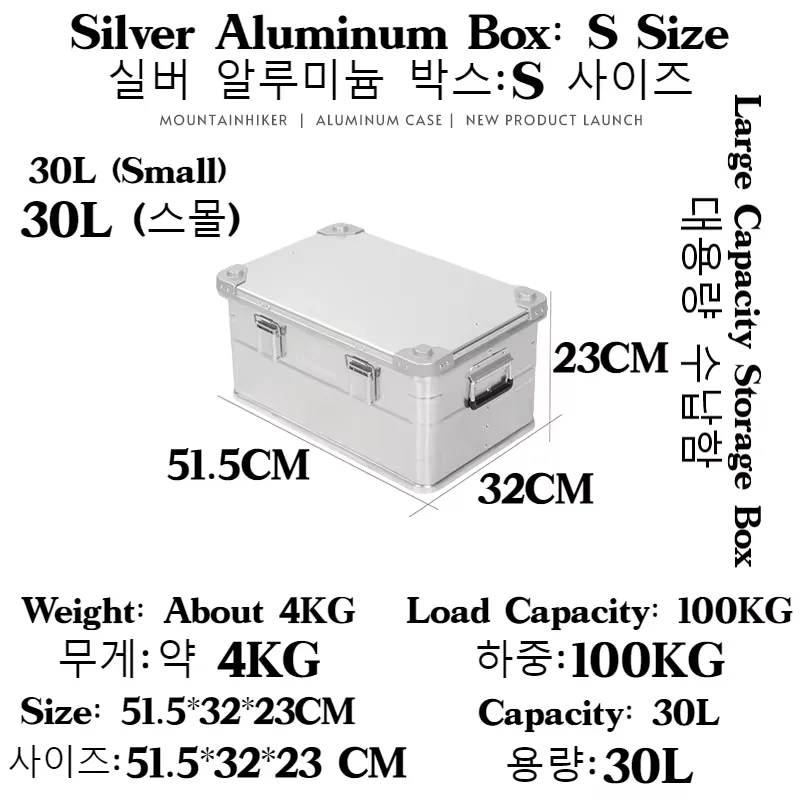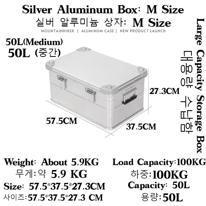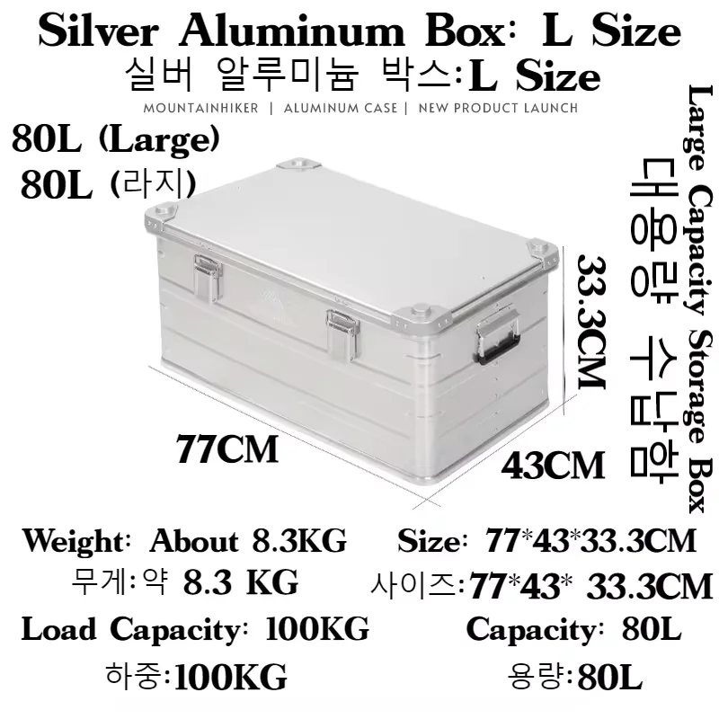 MOUNTAINHIKER Outdoor Storage Box Camping Picnic Travel Aluminum Alloy Large Capacity Box Silver Storage Bag 30-80L