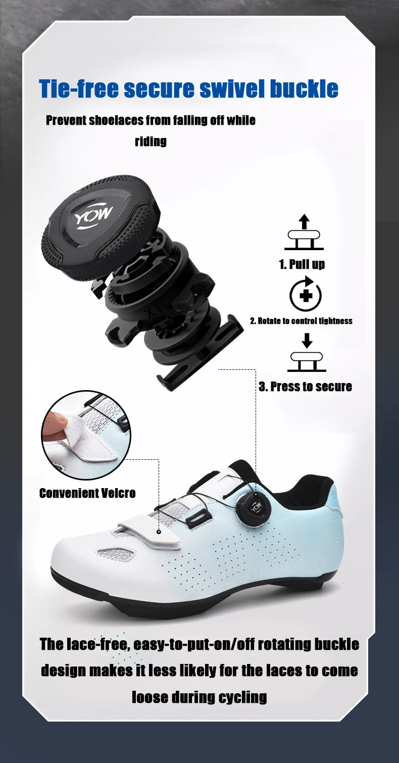 No need to tie shoelaces, easy-to-put-on/off rotating buckle design, shoelaces are not likely to get loose during cycling