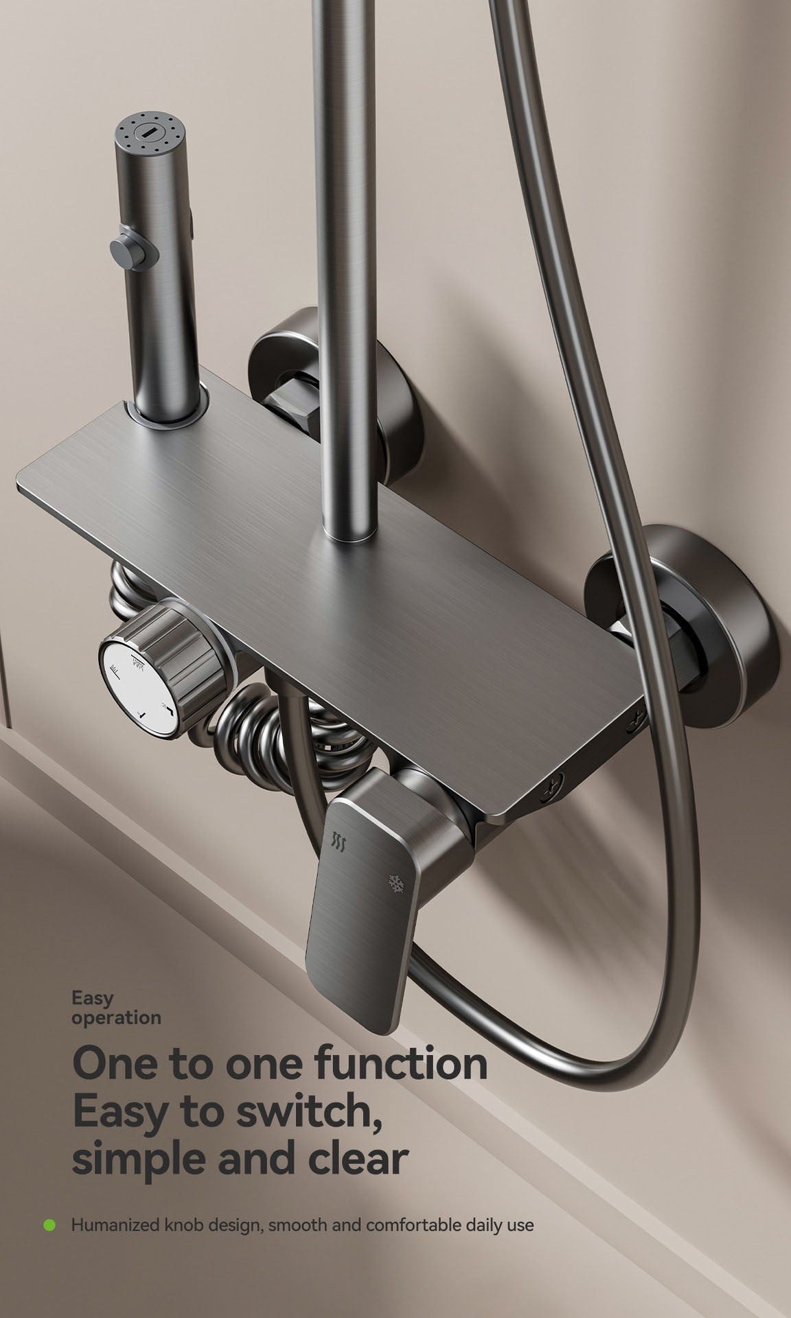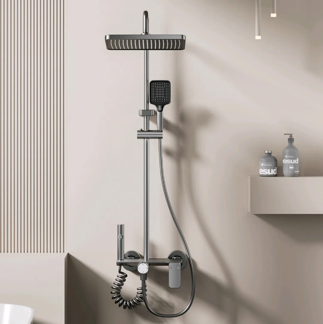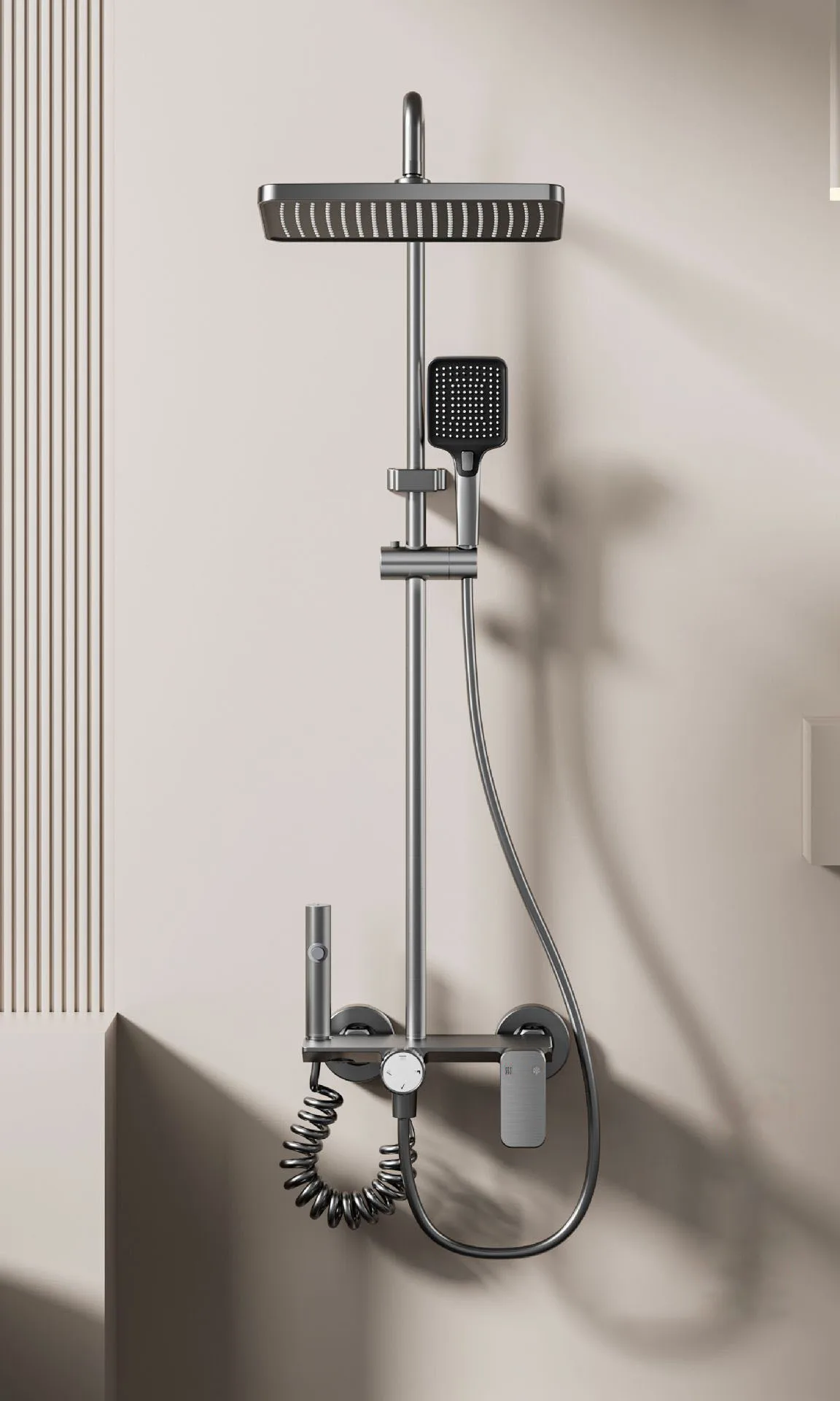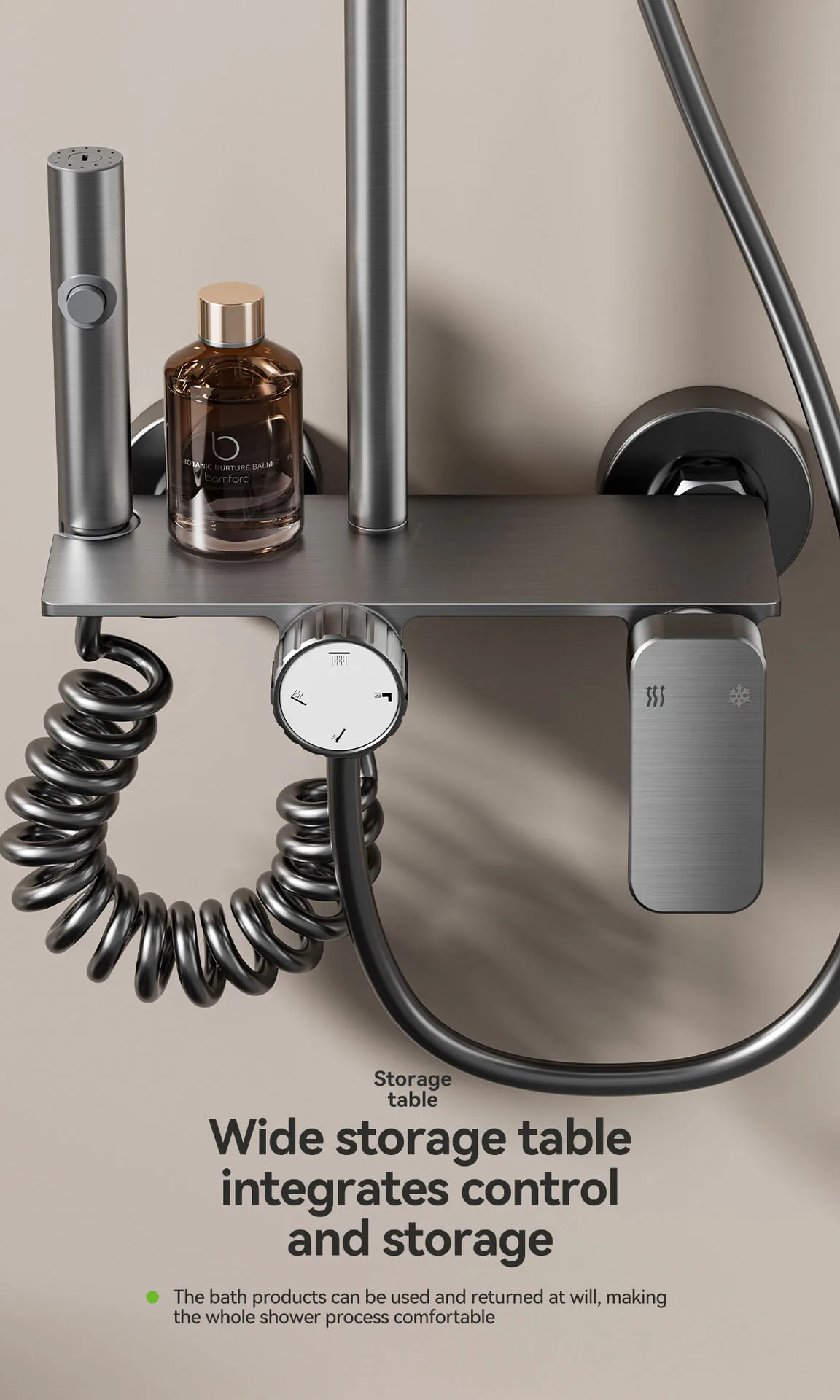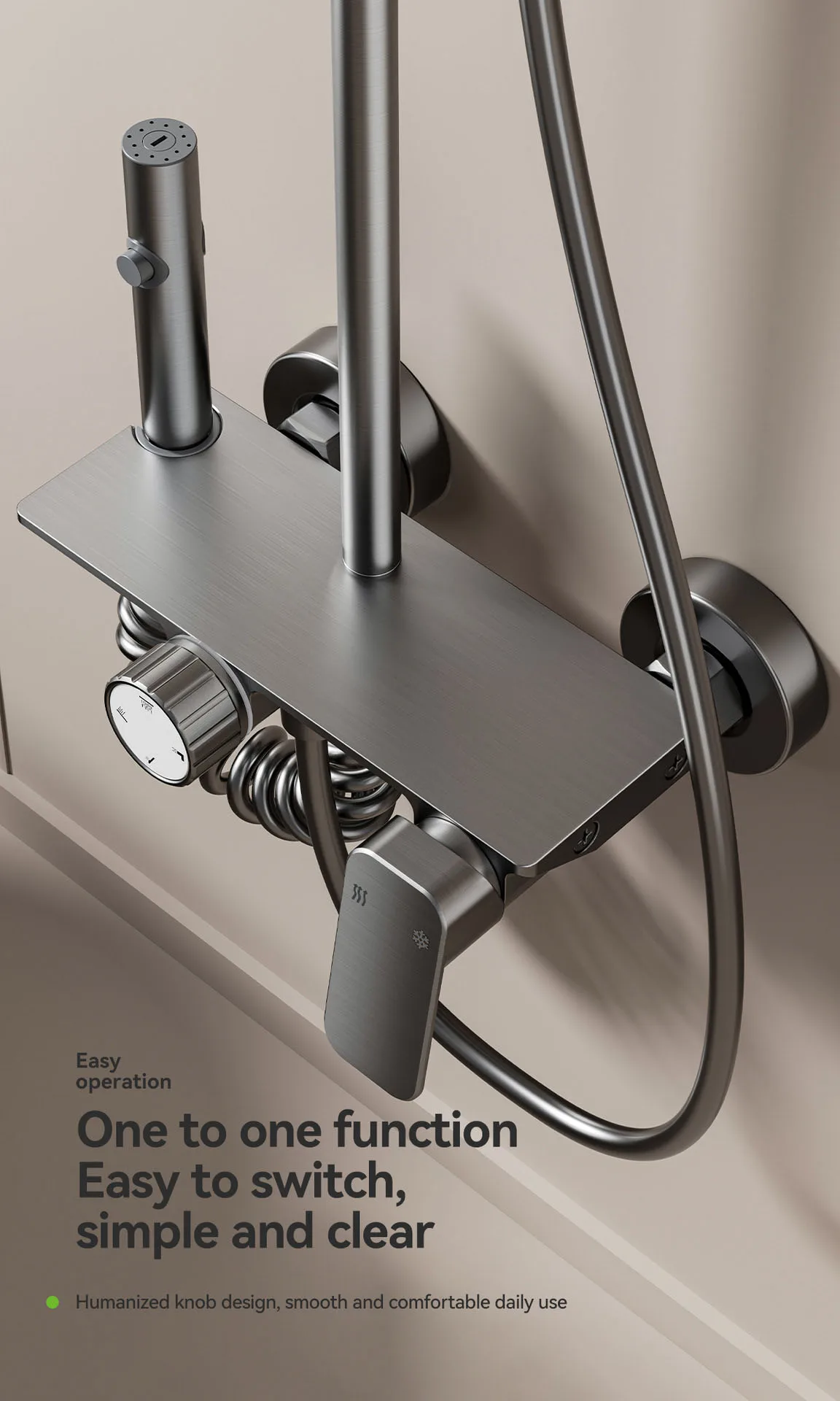 Multifunction Bathroom Shower System Set Hot and Cold Water Household Rotary Knob Pressurize Aluminum Gunmetal Gray Shower Set