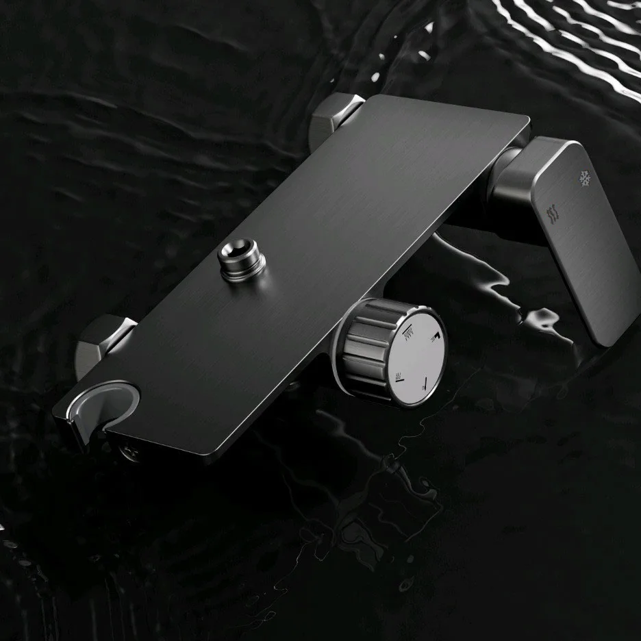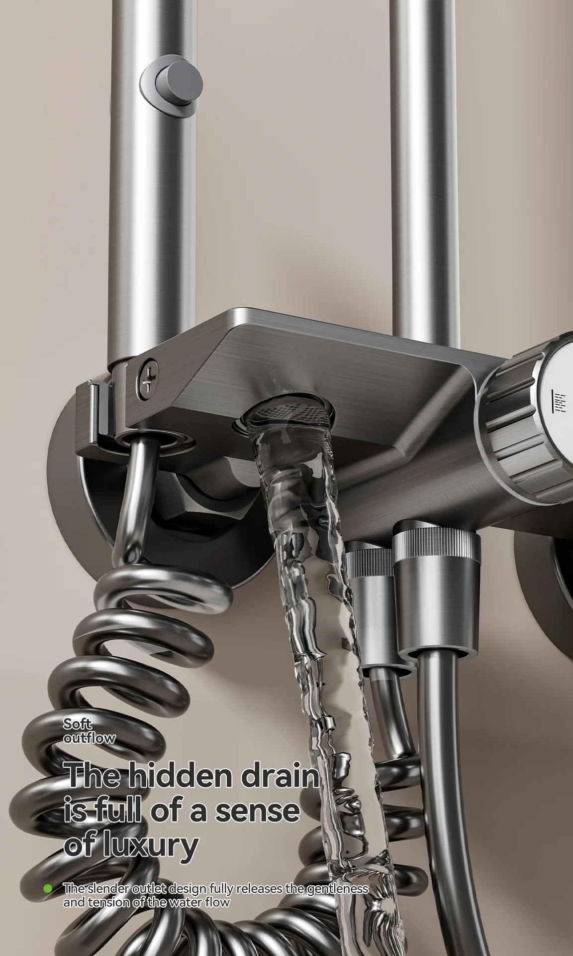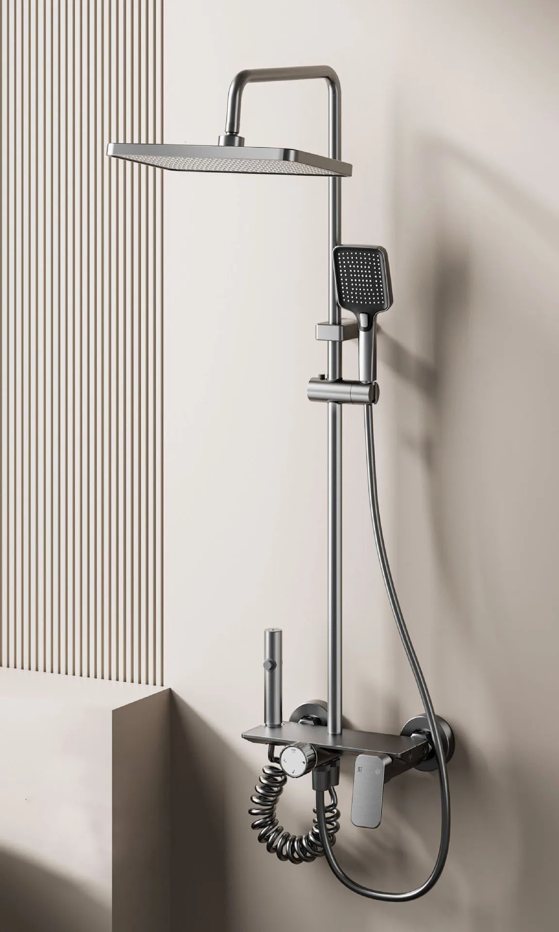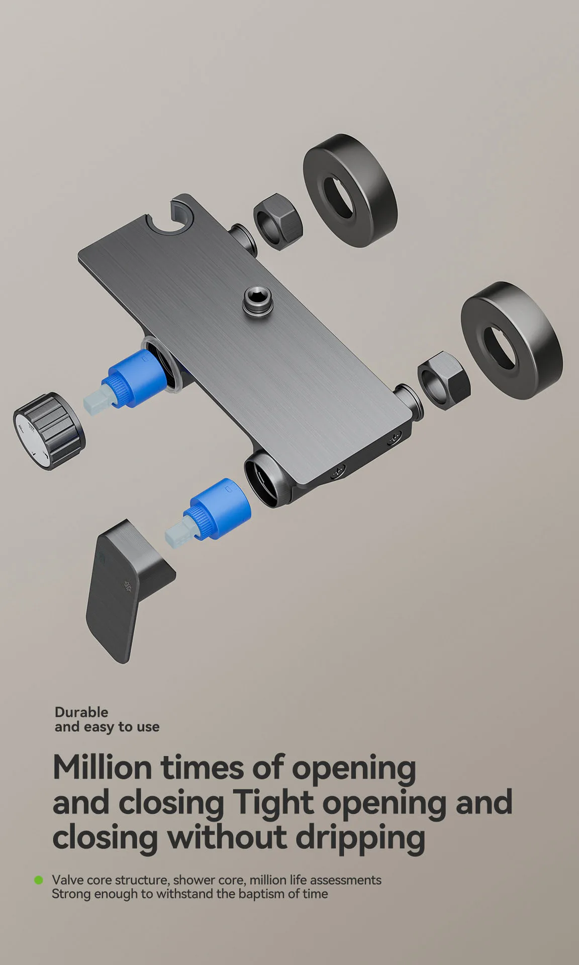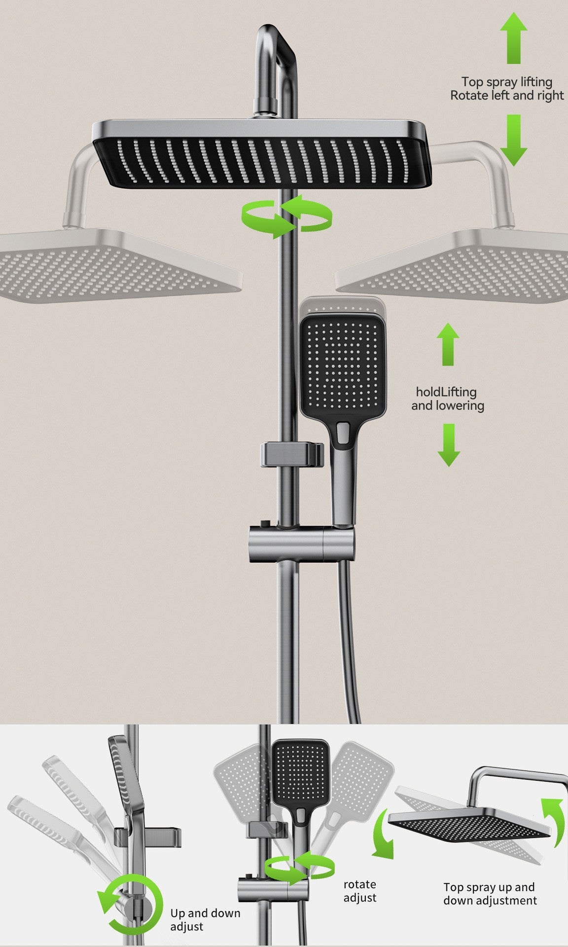 Multifunction Bathroom Shower System Set Hot and Cold Water Household Rotary Knob Pressurize Aluminum Gunmetal Gray Shower Set