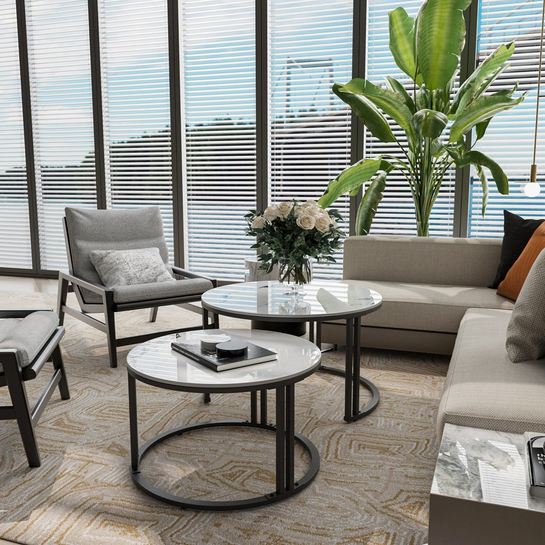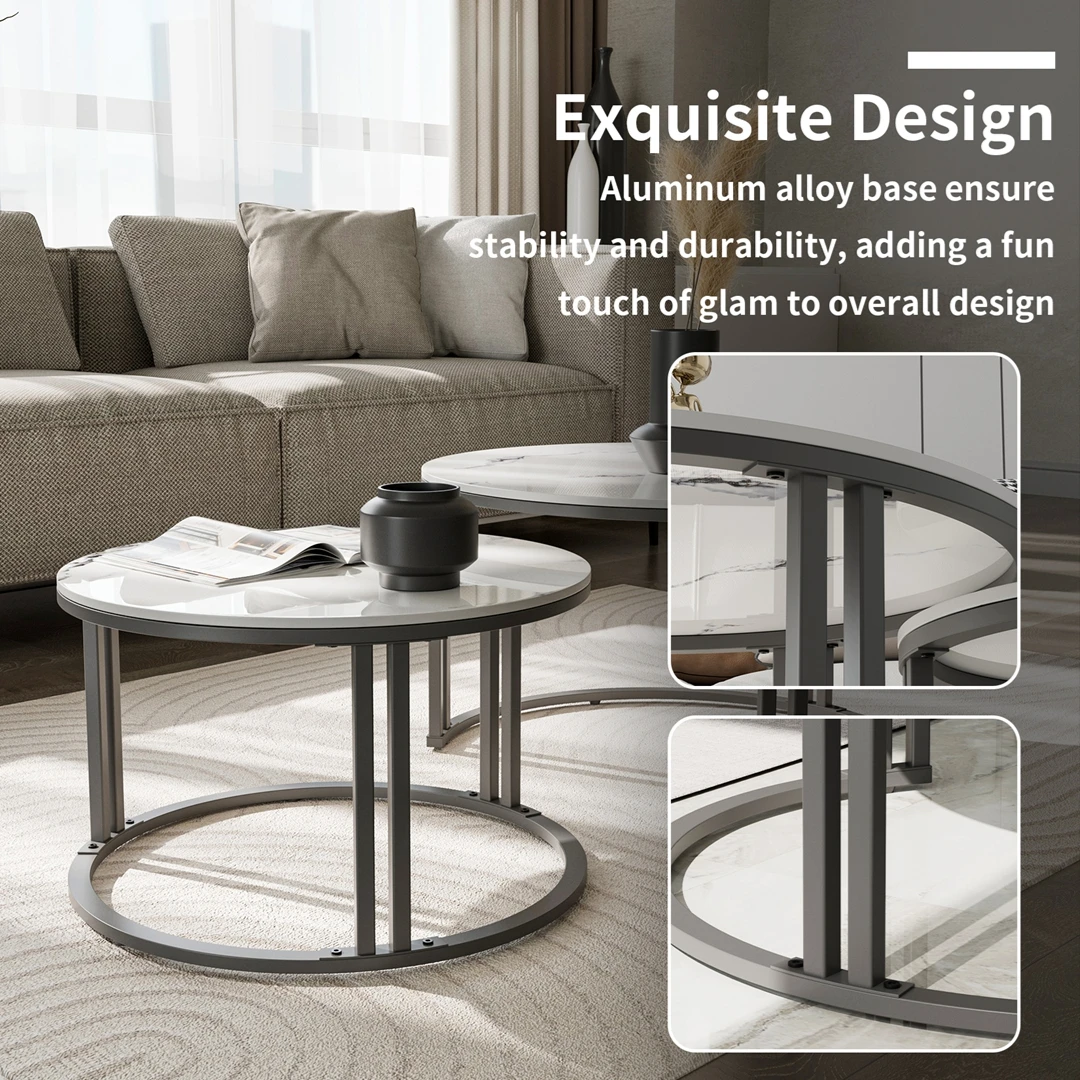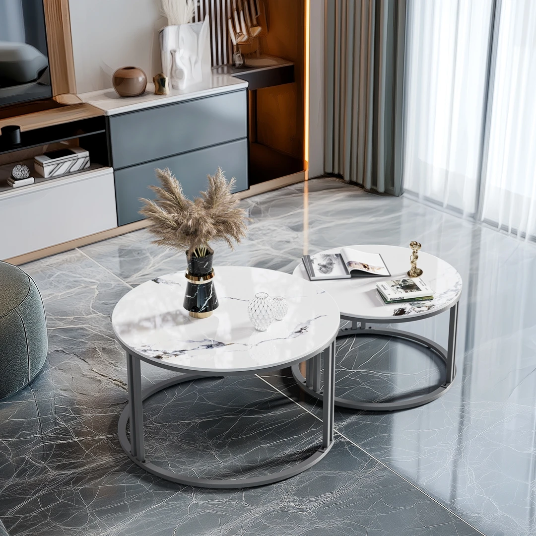 Nested Coffee Table: Set of 2 Modern Round Nesting Coffee Table Sintered Stone-top Stacking Sofa Accent Table for Living Room