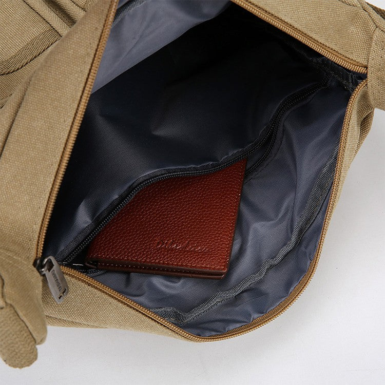 Neutral business casual crossbody bag - adjustable shoulder straps, multiple zippered compartments, durable black polyester lini
