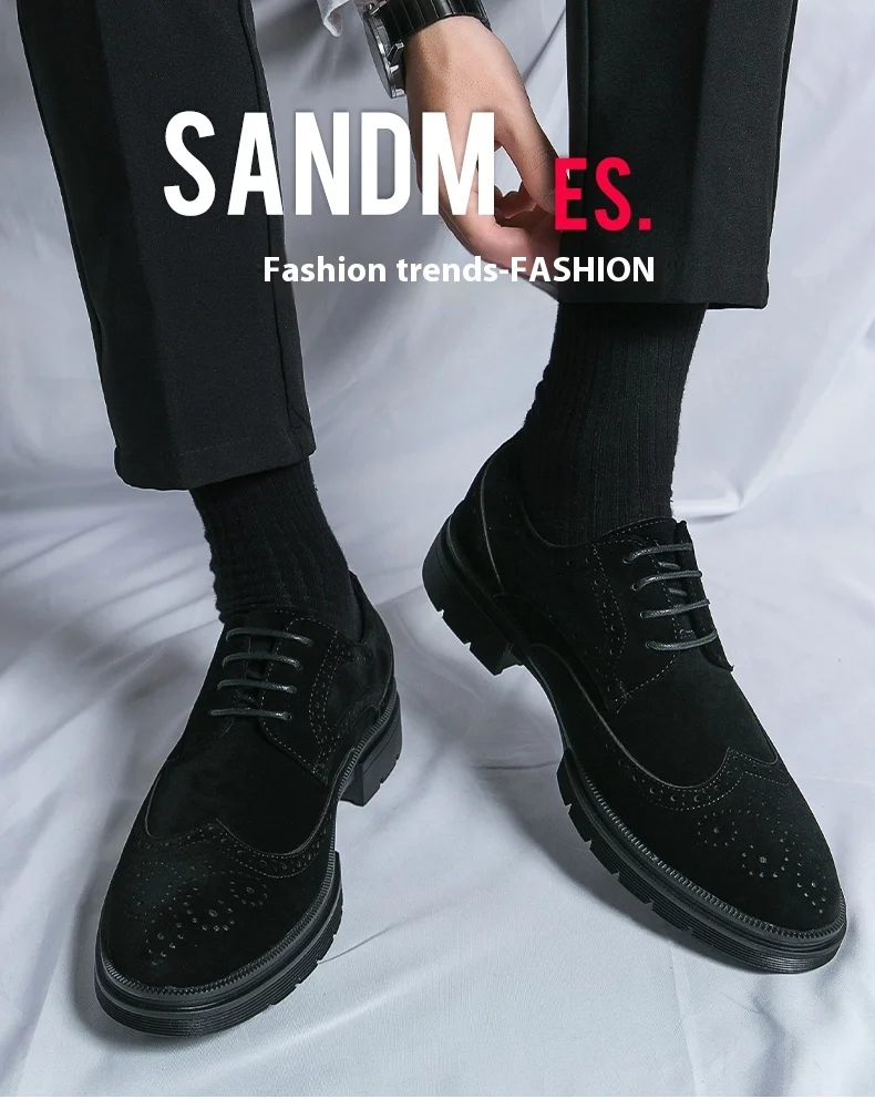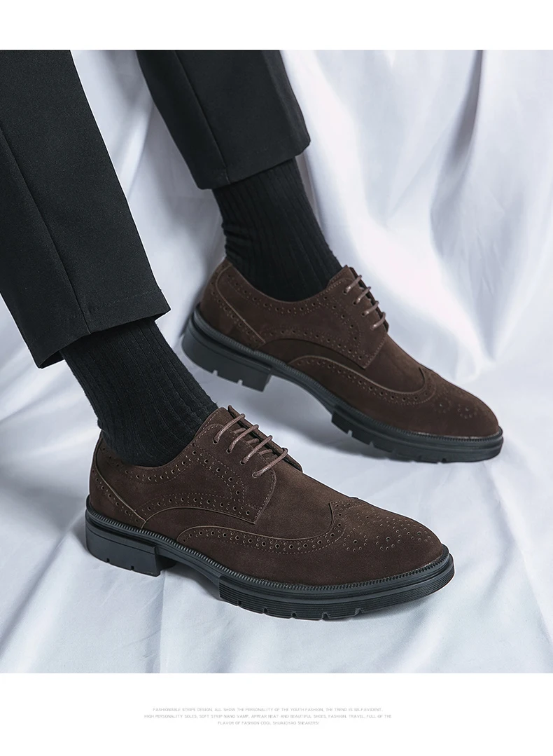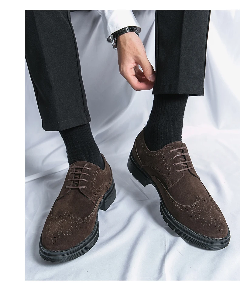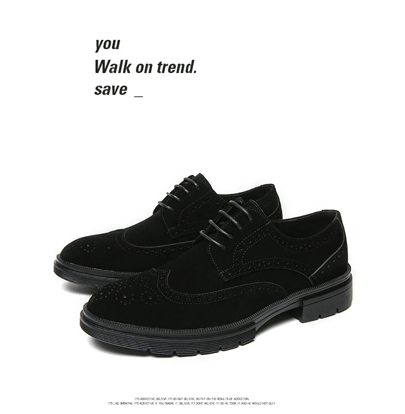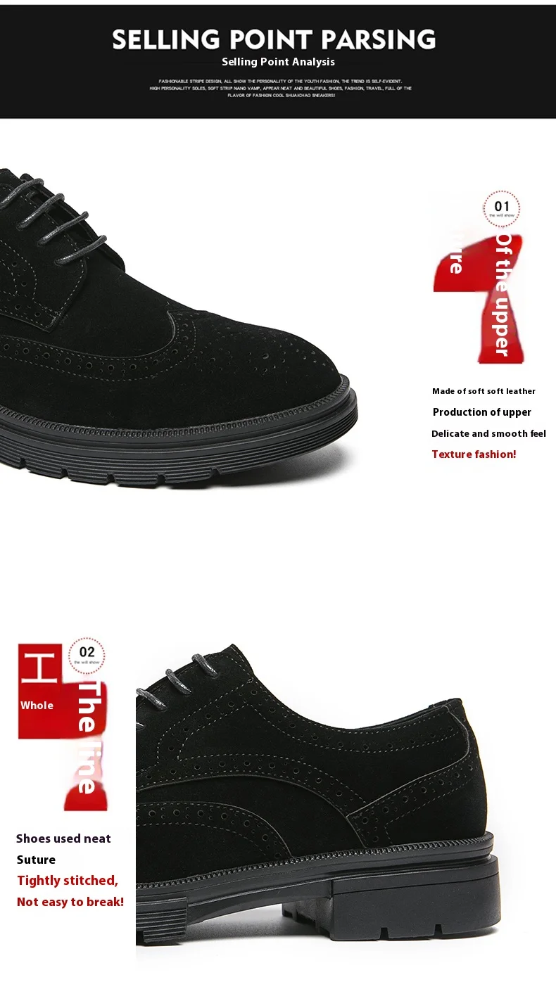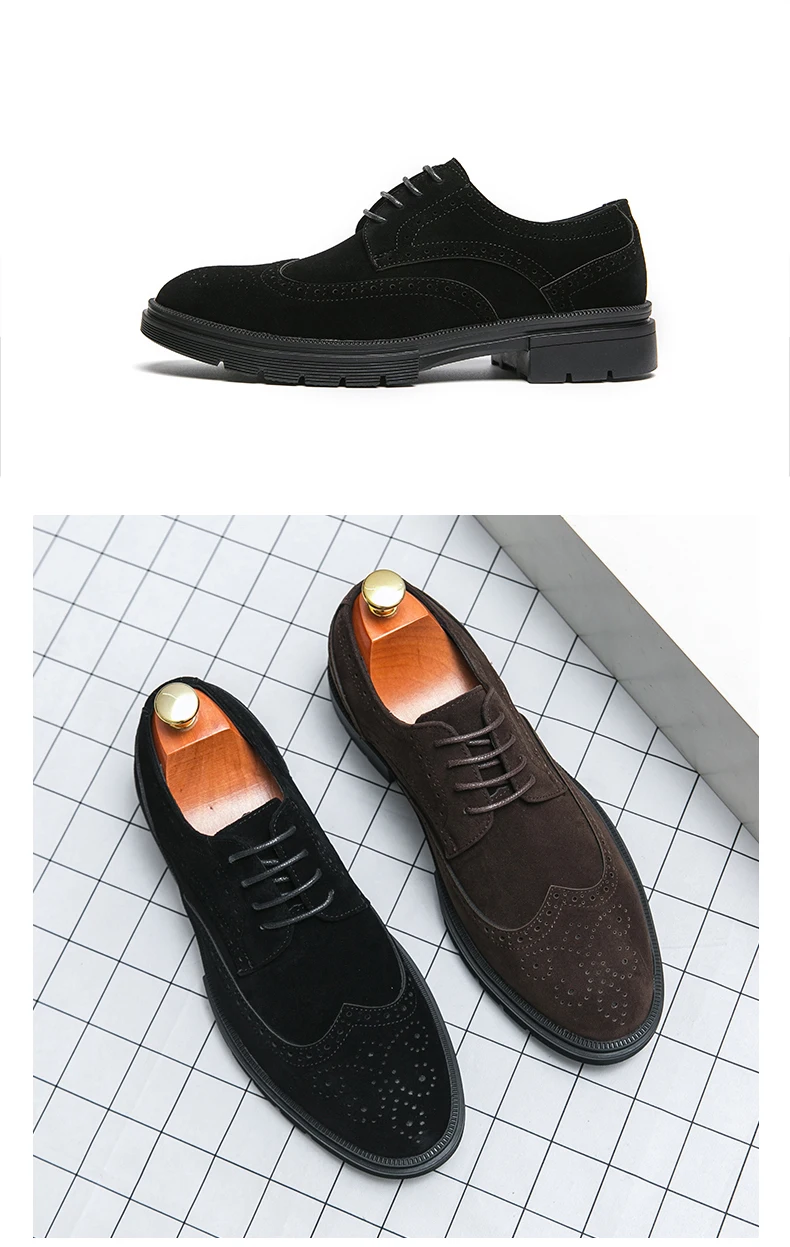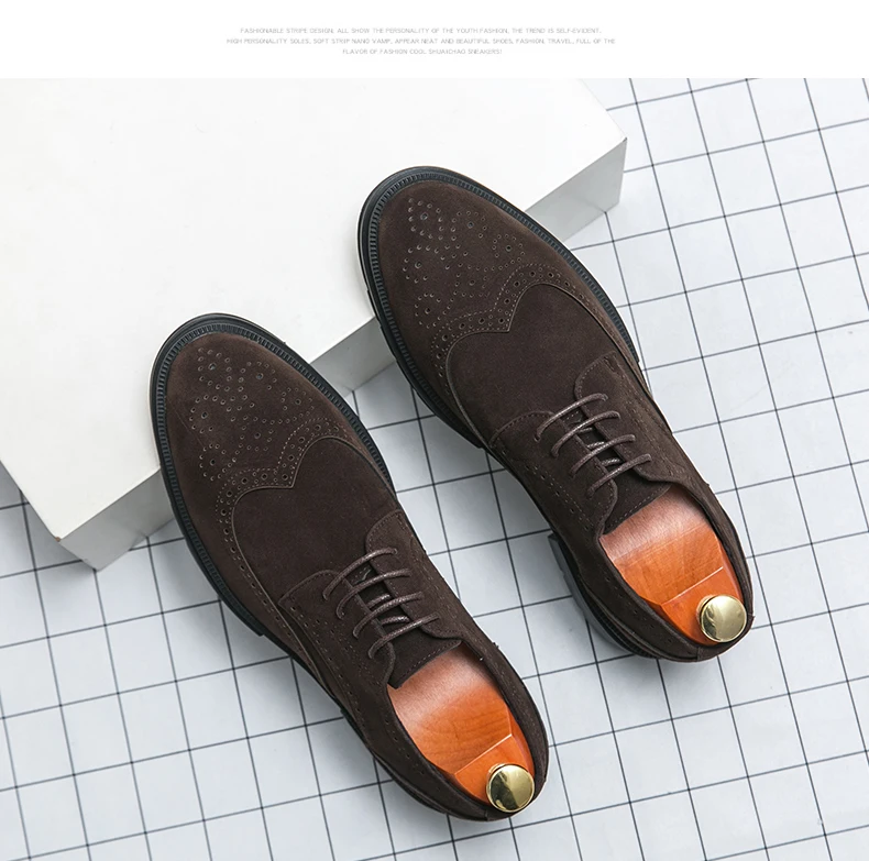 New 46 large size abrasive leather Brock carved business dress shoes for men round head lace-up casual shoes