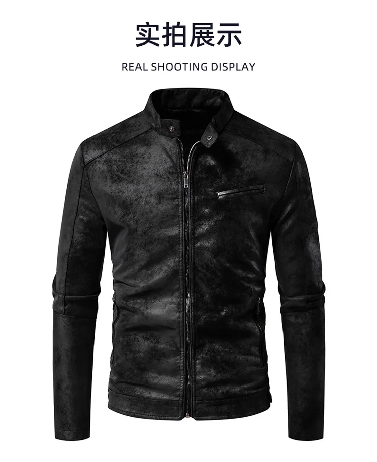 New American Retro Leather Jacket with A High-end Feel, Retro Tie Dye Washed Matte Craftsmanship, Cool Motorcycle Leather Jacket