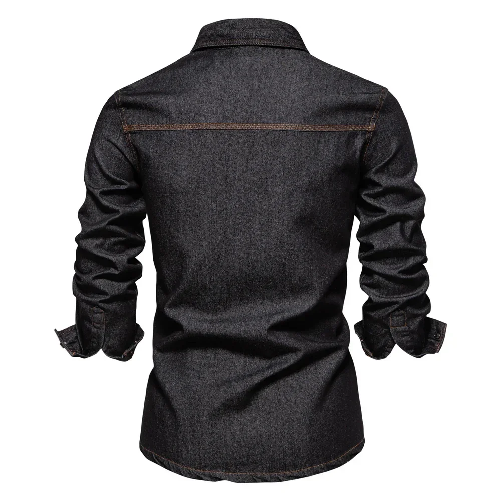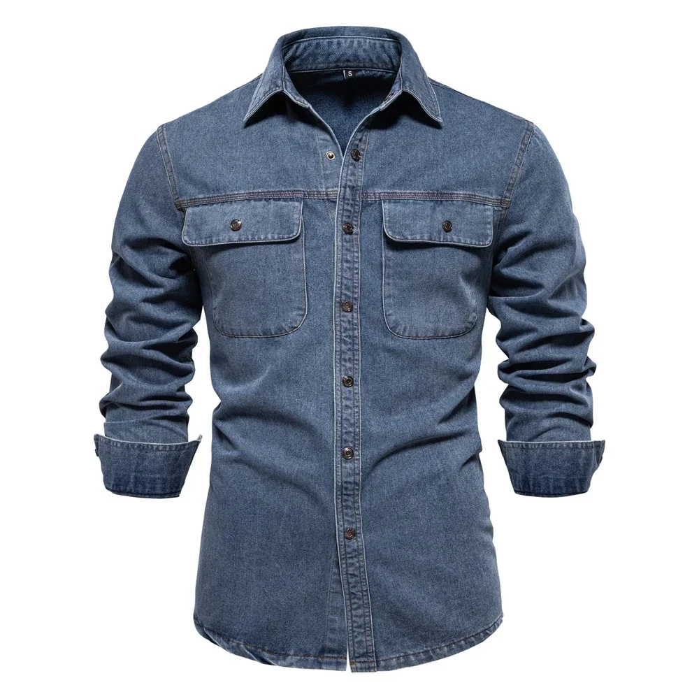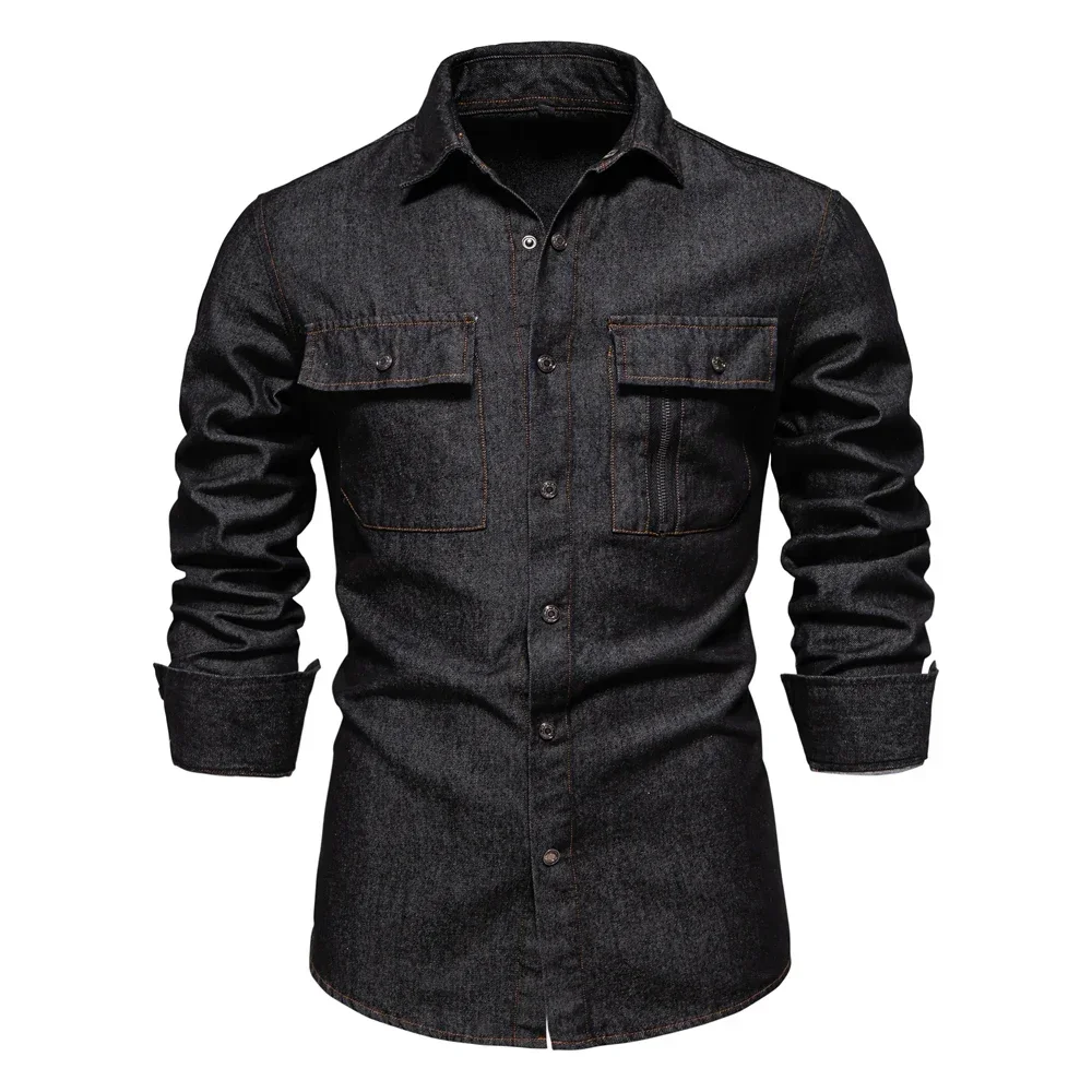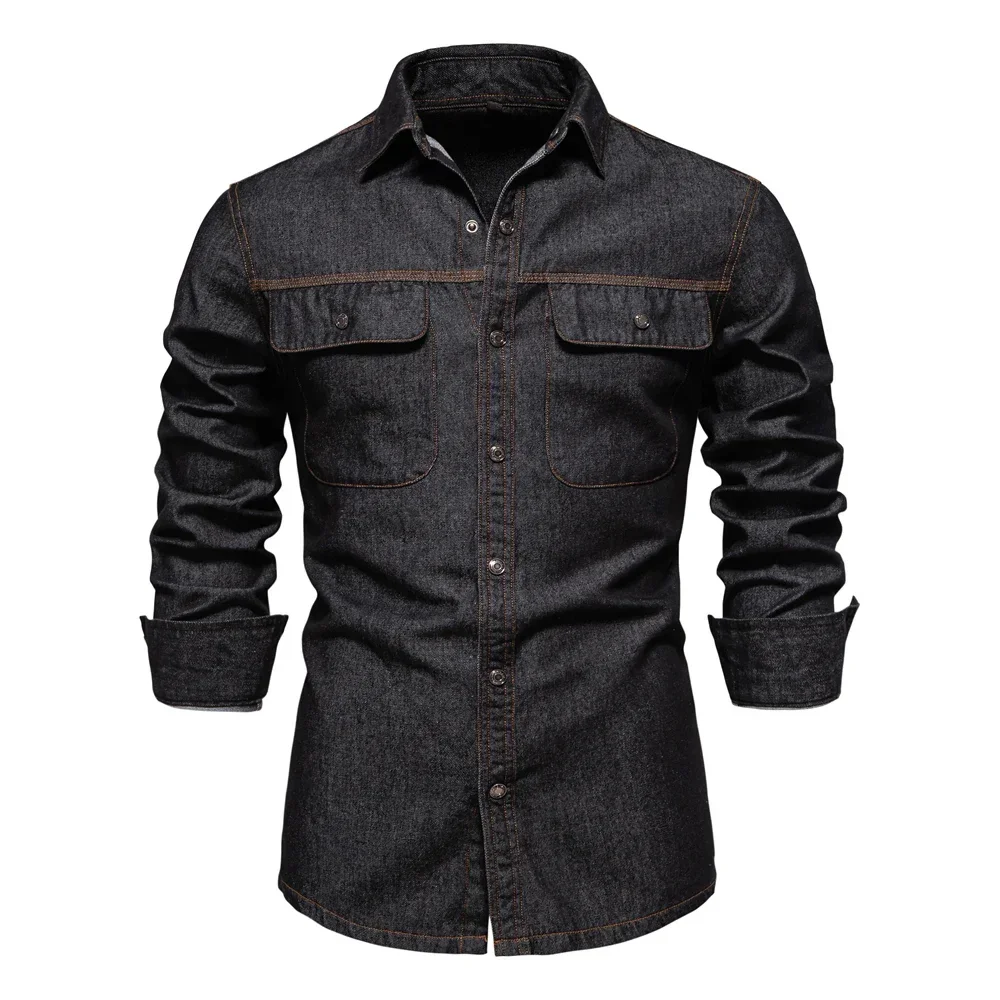 New Autumn 100% Cotton Men's Denim Shirts Solid Color Long Sleeve Cowboy Jean T-Shirt Coat Fashion Casual Fit Shirts for Men