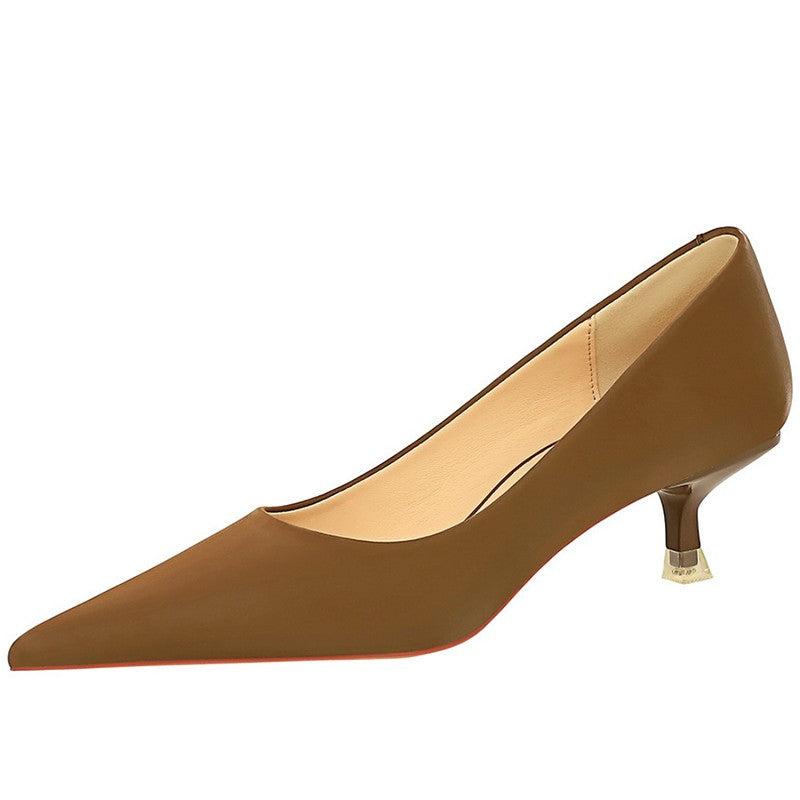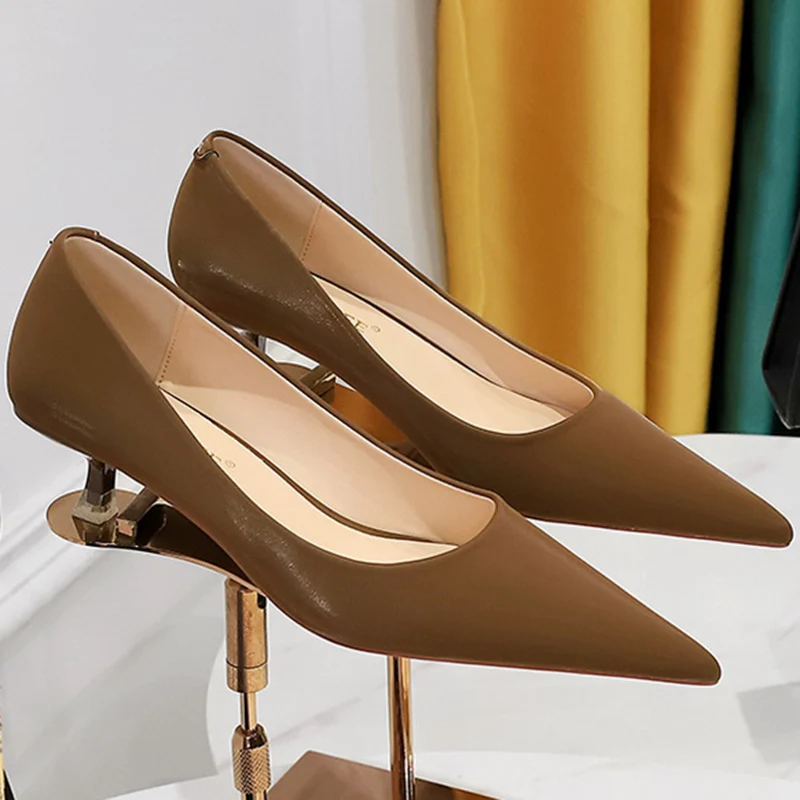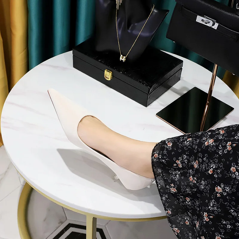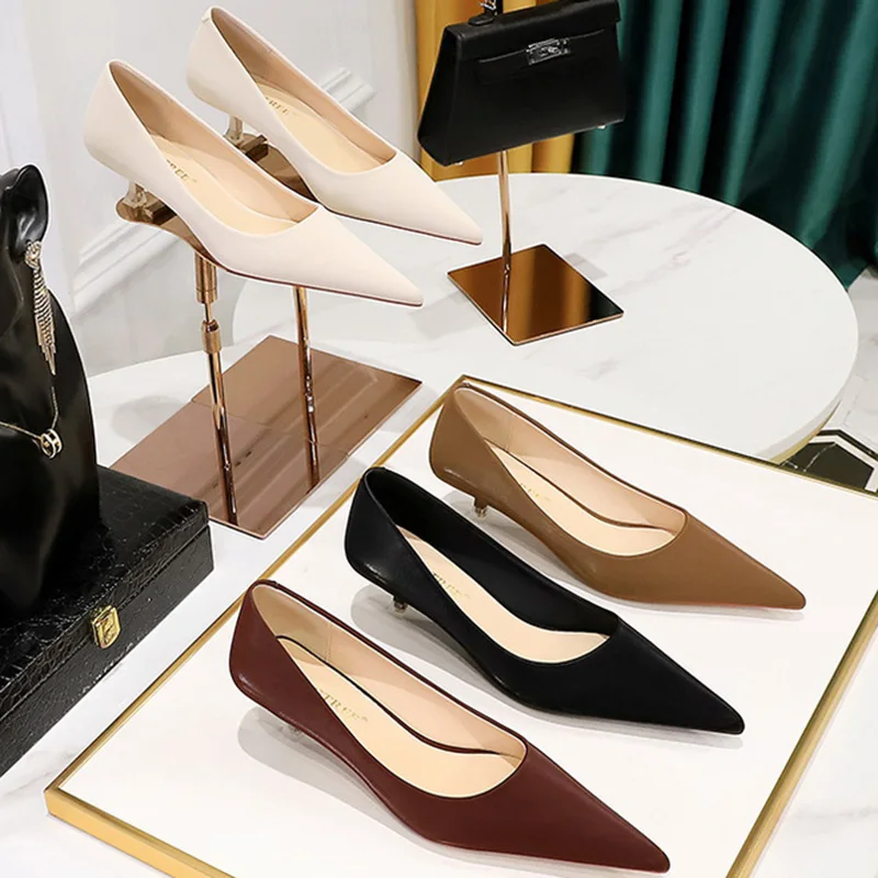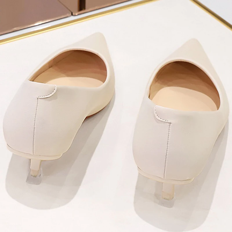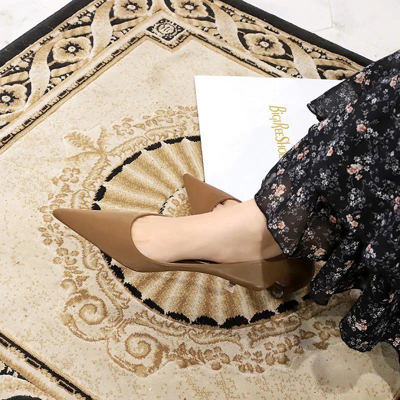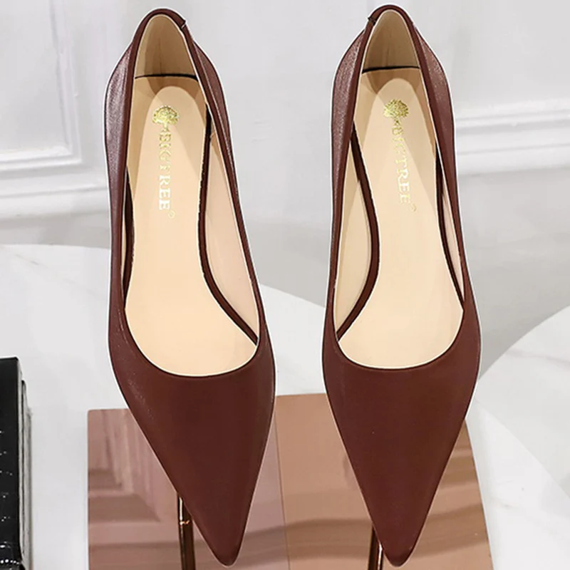 New Big Size Women's Boat Shoes Leather 4.5cm High Heels Pointed Toe Pumps Stilettos Basic Pump For Female White Black Wine Red