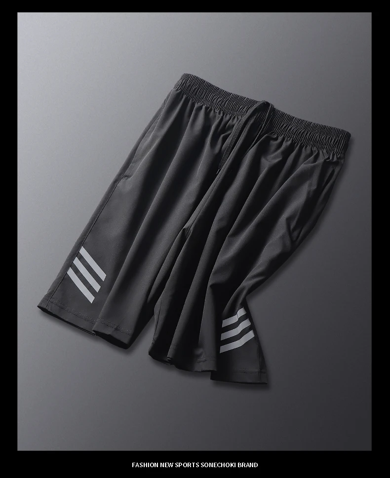 New Black Running Shorts Men Striped Printing Loose Basketball Sport Gym Breathable Shorts Fitness Training Workout Bottom Male