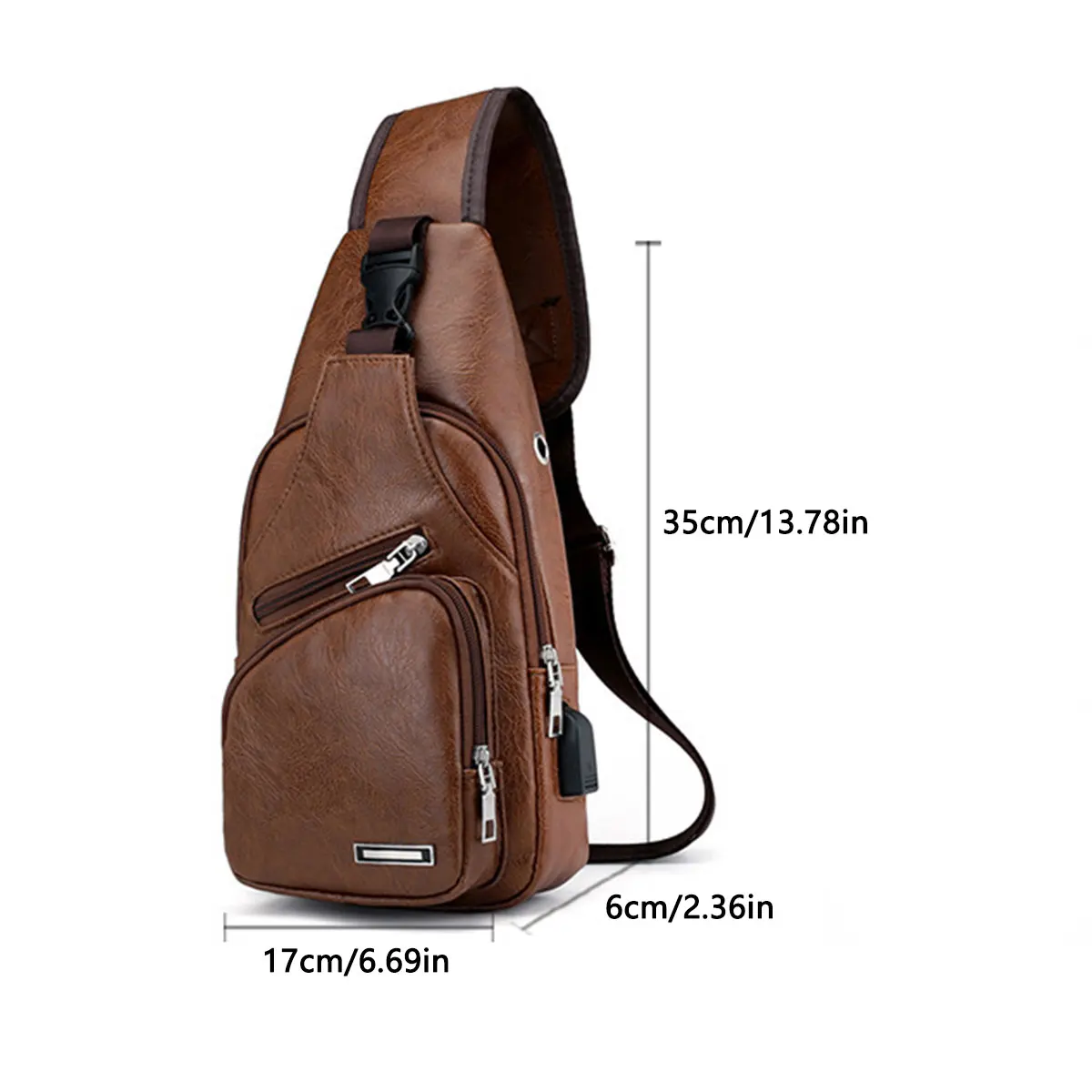 New casual men's shoulder bag, outdoor sports large capacity chest bag, men's multifunctional PU business crossbody bag