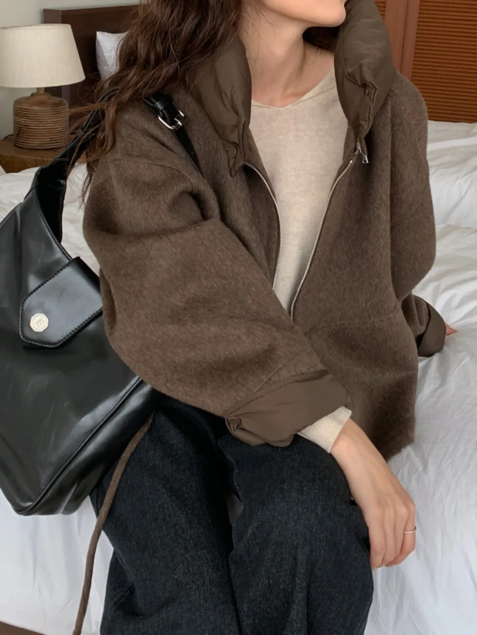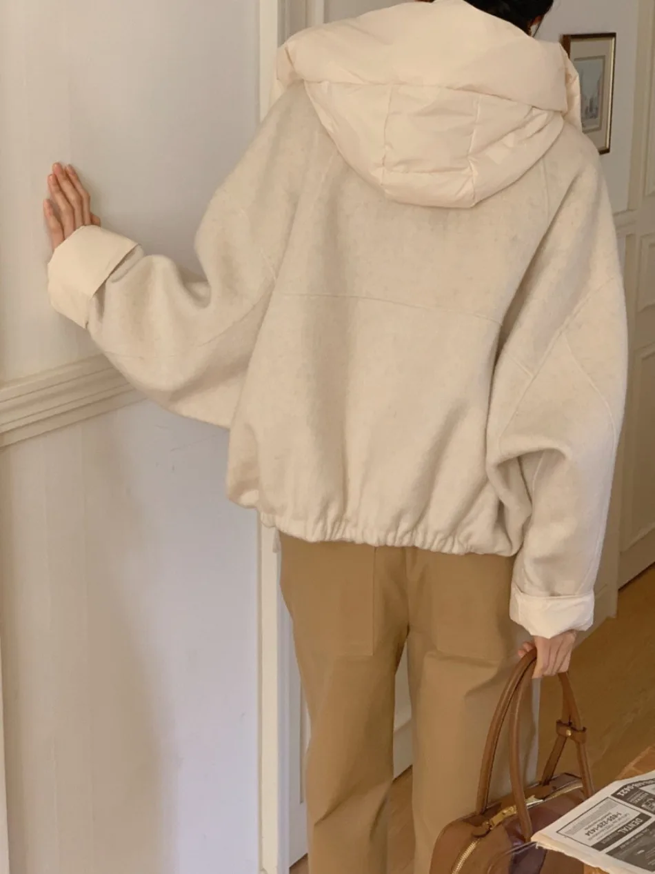 New Coats and Jackets Autumn Winter New Elegant Hooded Detachable Lace Up Short Woolen Coat Korean Fashion Casual Loose Jackets