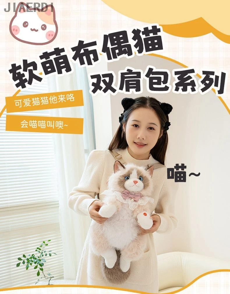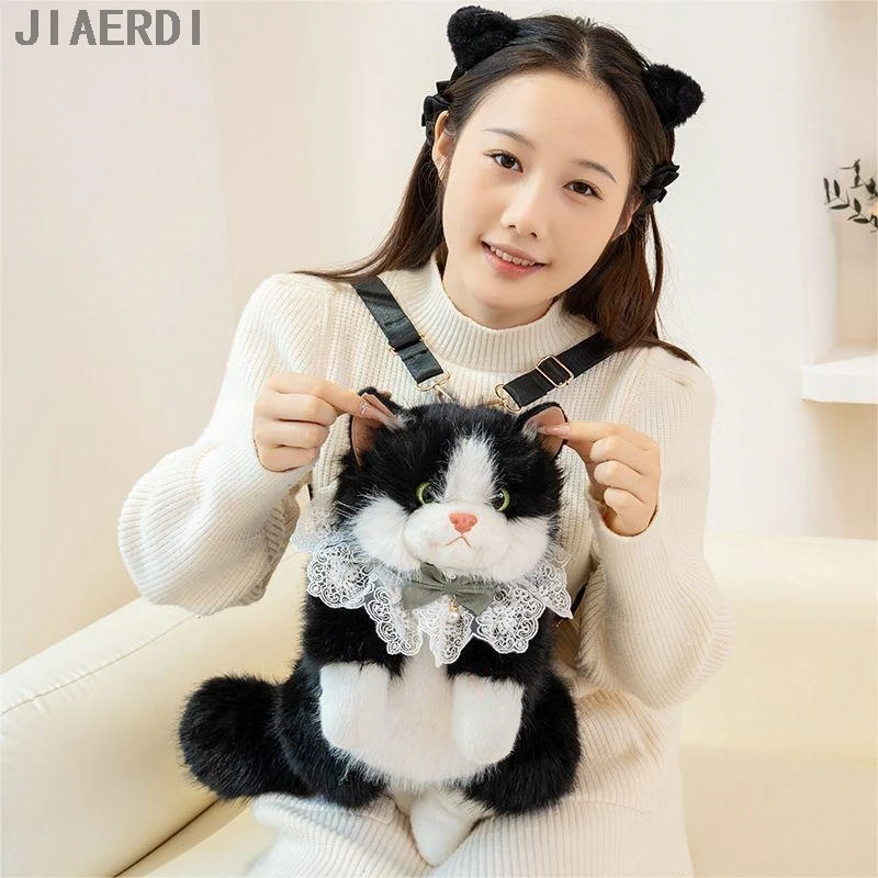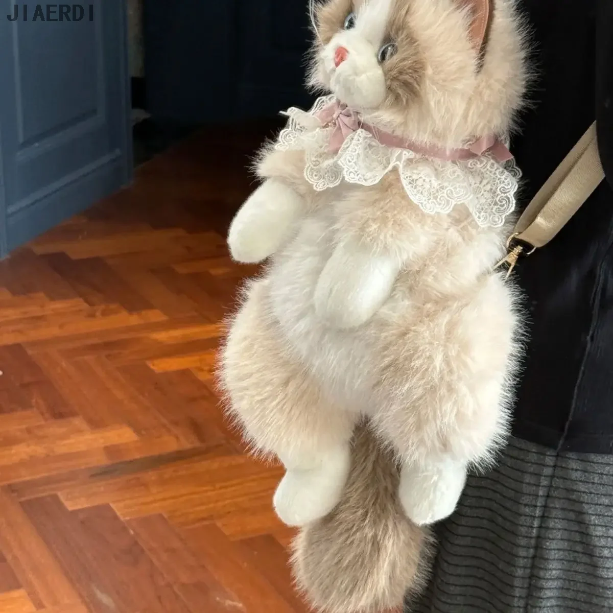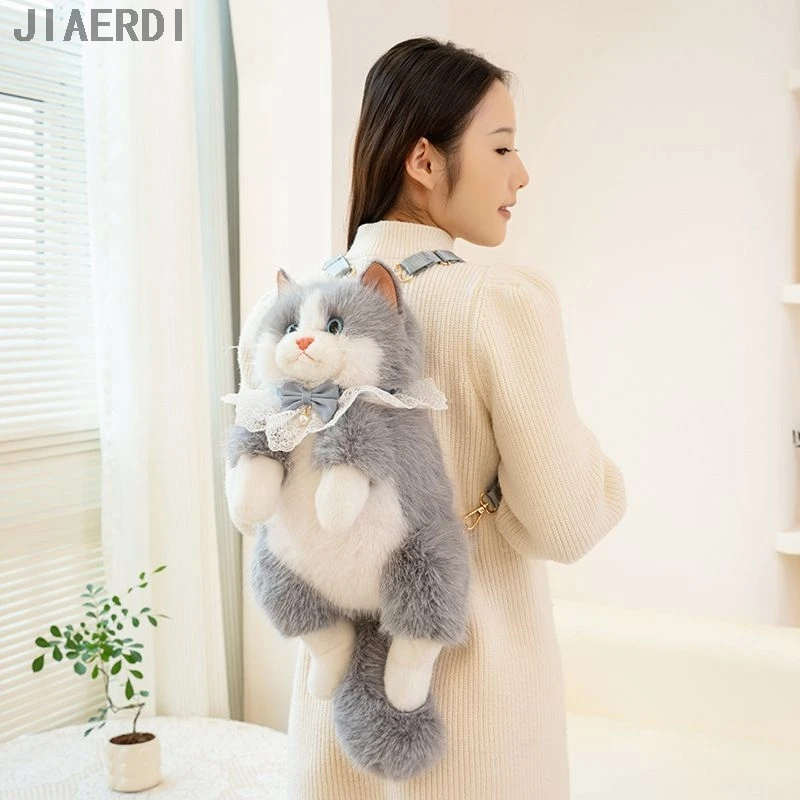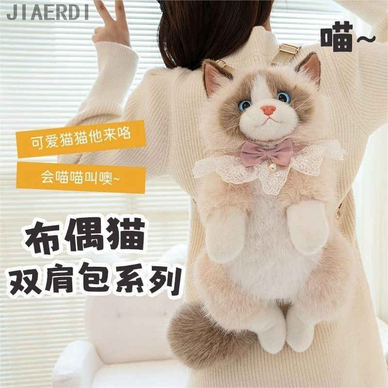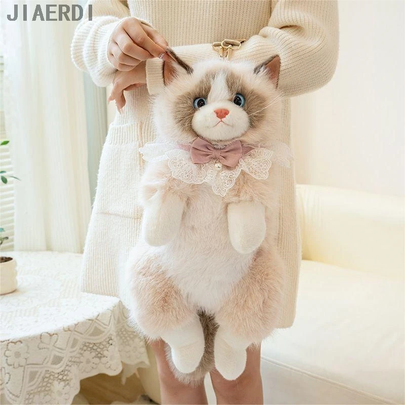 New Cute Realistic Ragdoll Backpack Women Cat Plush Doll Small Capacity Daypack Lolita Cartoon Personality Mochilas Mujer Chic