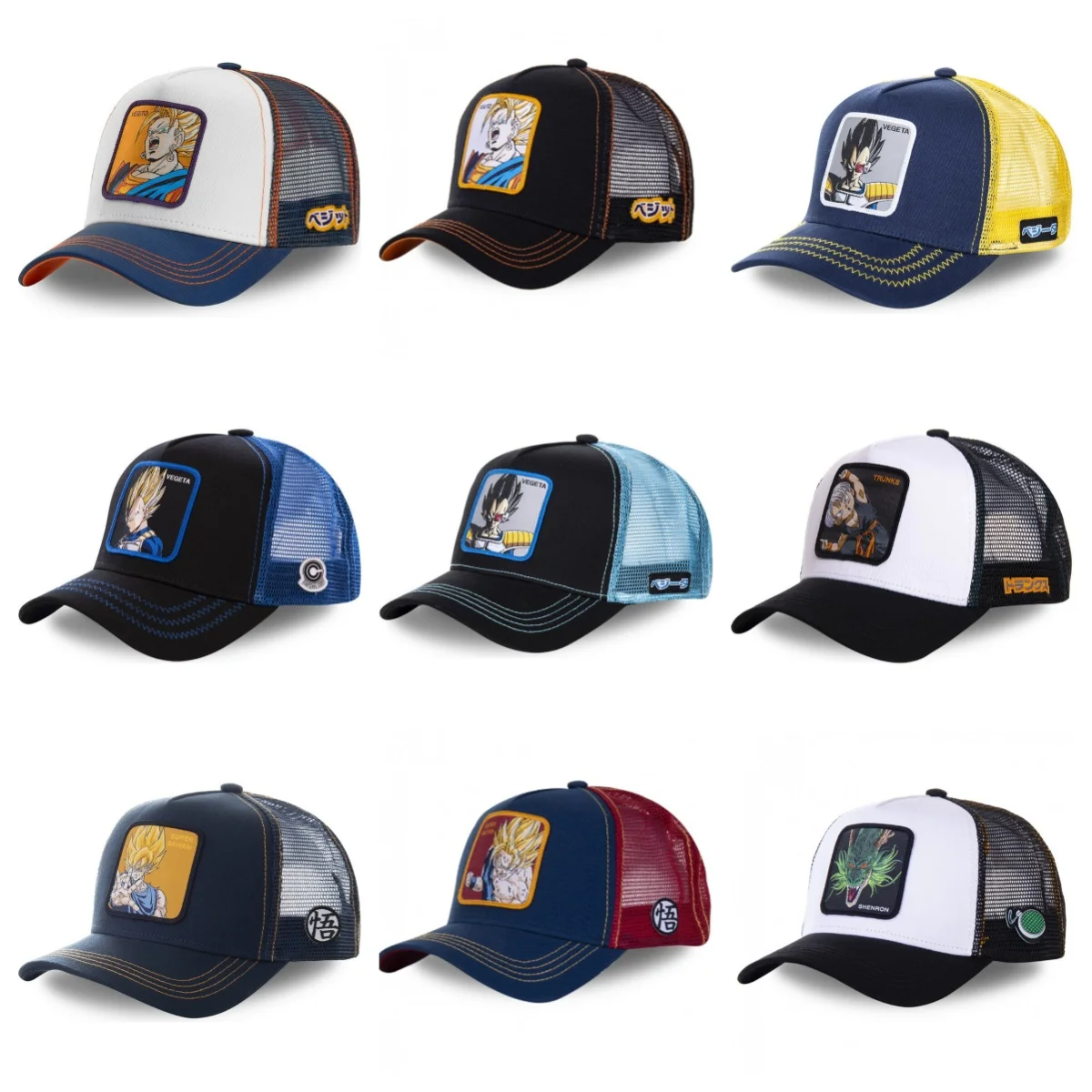 New Dragon Ball Son Goku Cap Summer Travel Peaked Cap Men's Embroidery Hip-Hop Cap Style Sun Visor Adjustable Trucker Mesh Cap