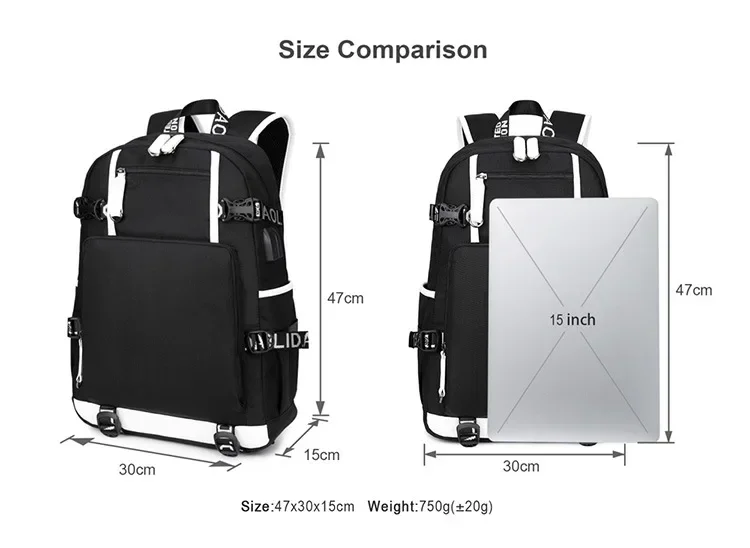 New Eevee Charizard USB Teenagers Schoolbags Women Men Laptop Travel Backpack Girl Boys Kids School Book Bags