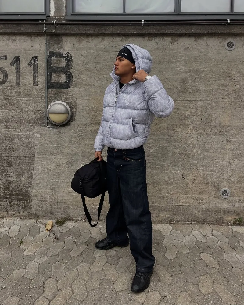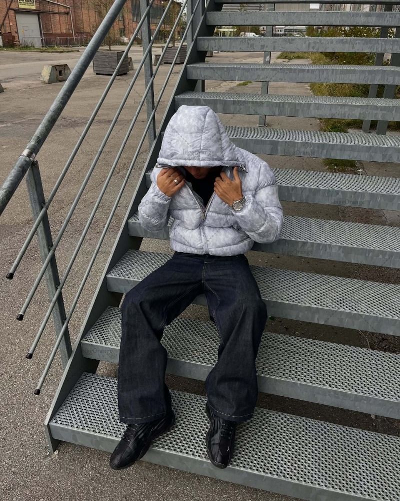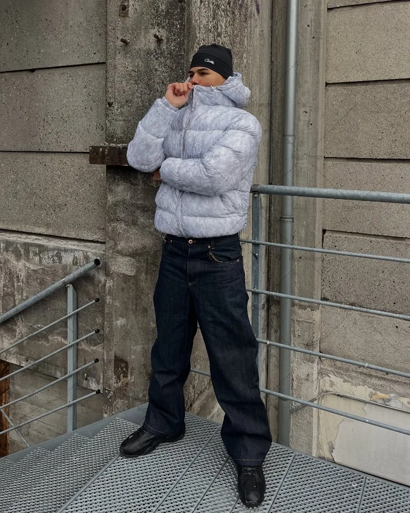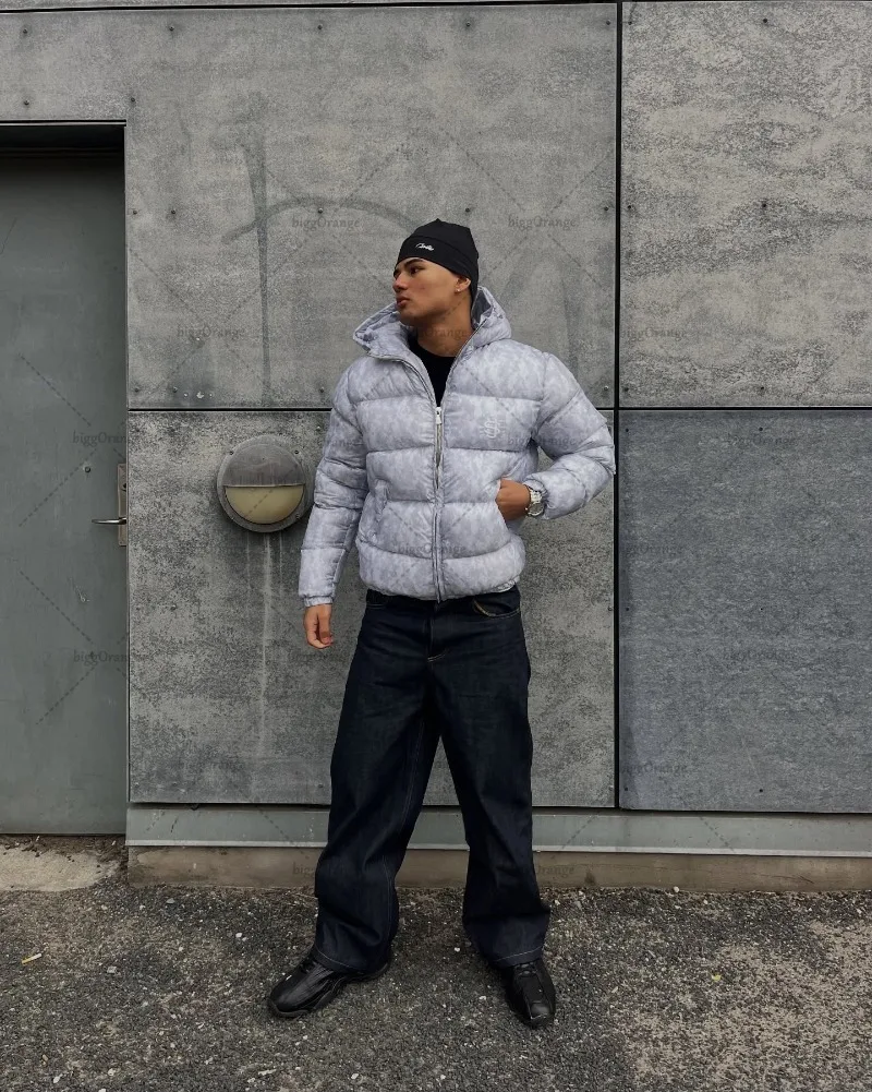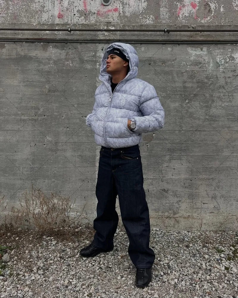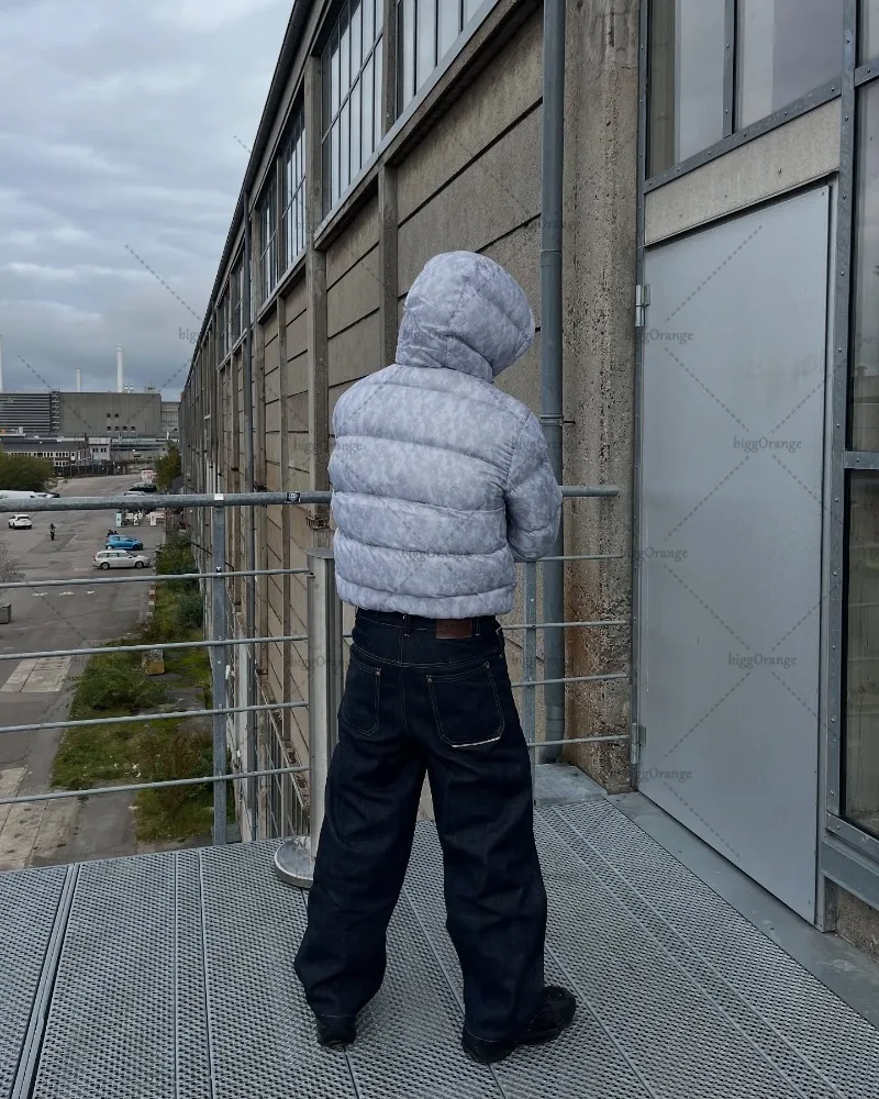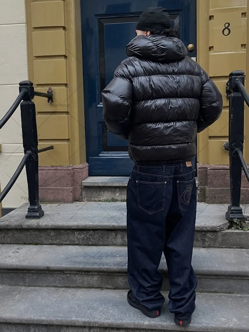 New European and American Trendy Streetwear Waterproof Hooded Jacket Men High Street Retro Solid Color Warm Zipper Coat Women