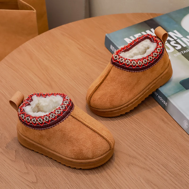 New Fashion Children's Ankle Boots Soft Winter 2025 Causal Girls Cotton Shoes Solid Color Kids School Plush Boots Warm Versatile