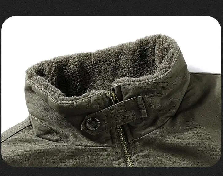 New Fashion Men Fleece Warm Bomber Jackets Winter Parkas Quality Male Cotton Multi-pockets Cargo Jackets Outdoor Tooling Coats 5