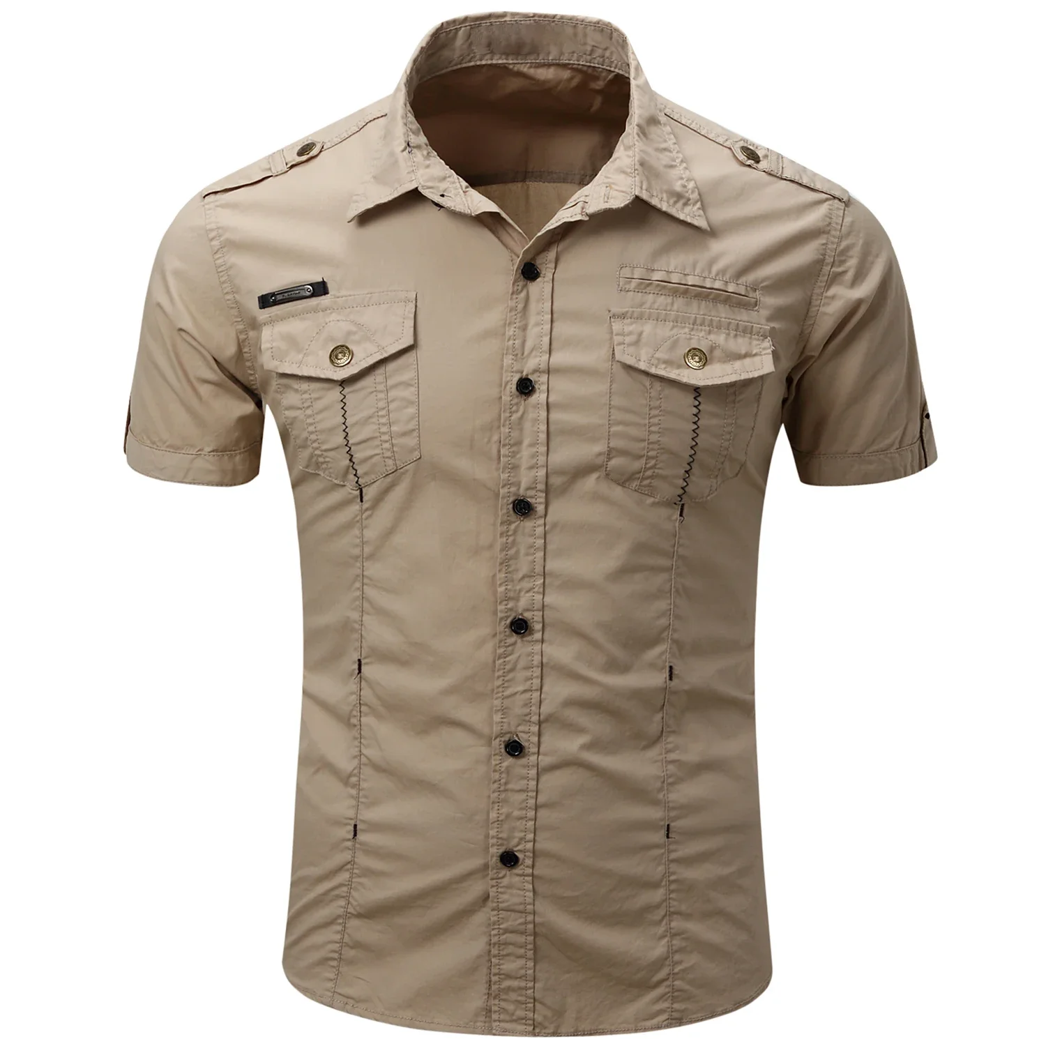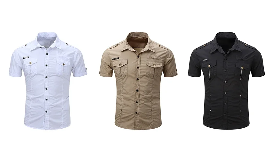 New Fashion Men's Casual Military Tactical Shirt Summer Short Sleeve Solid Color Cargo Work Shirts with Pocket