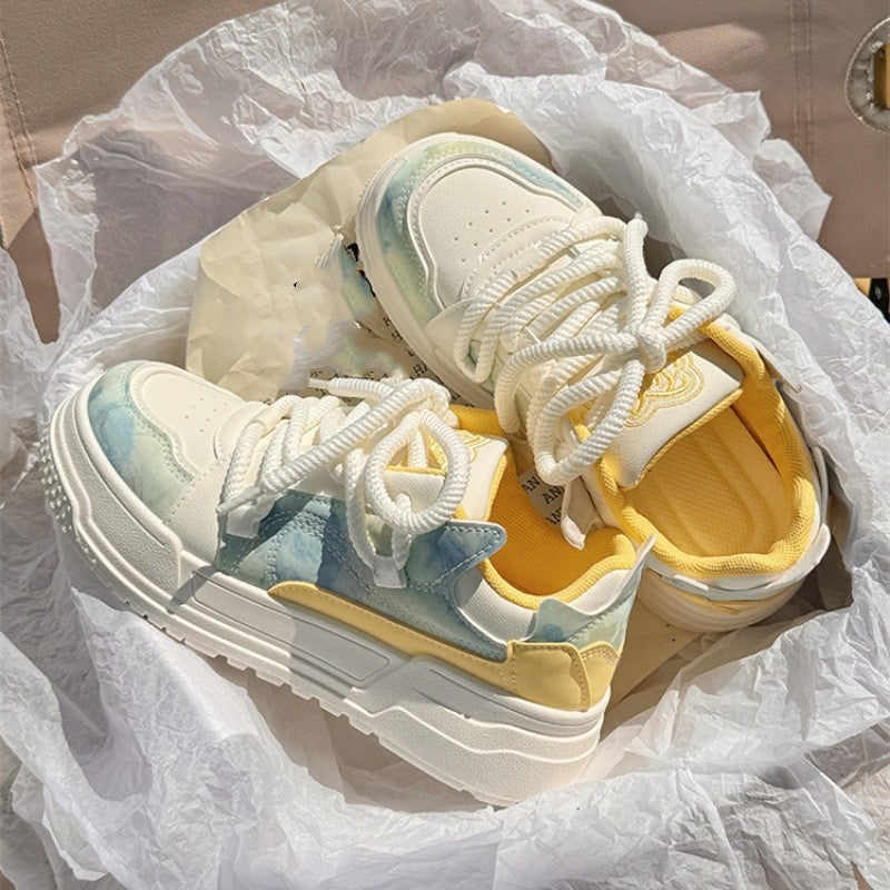 New Fashion Versatile Simple White Shoes Round Toe Thick Sole Lace Up Cute Lightweight Slim Casual Sports Shoes for Women