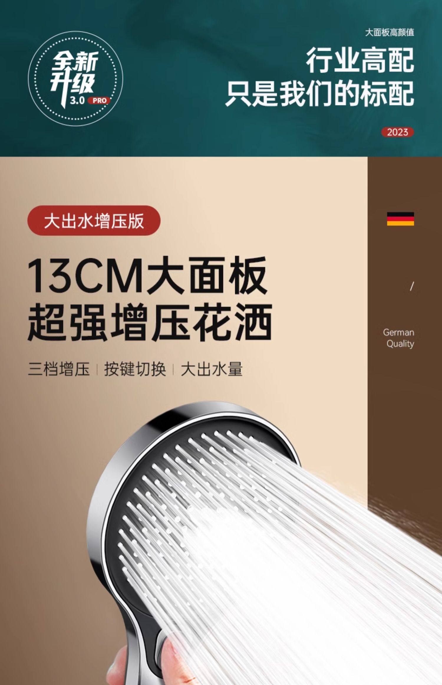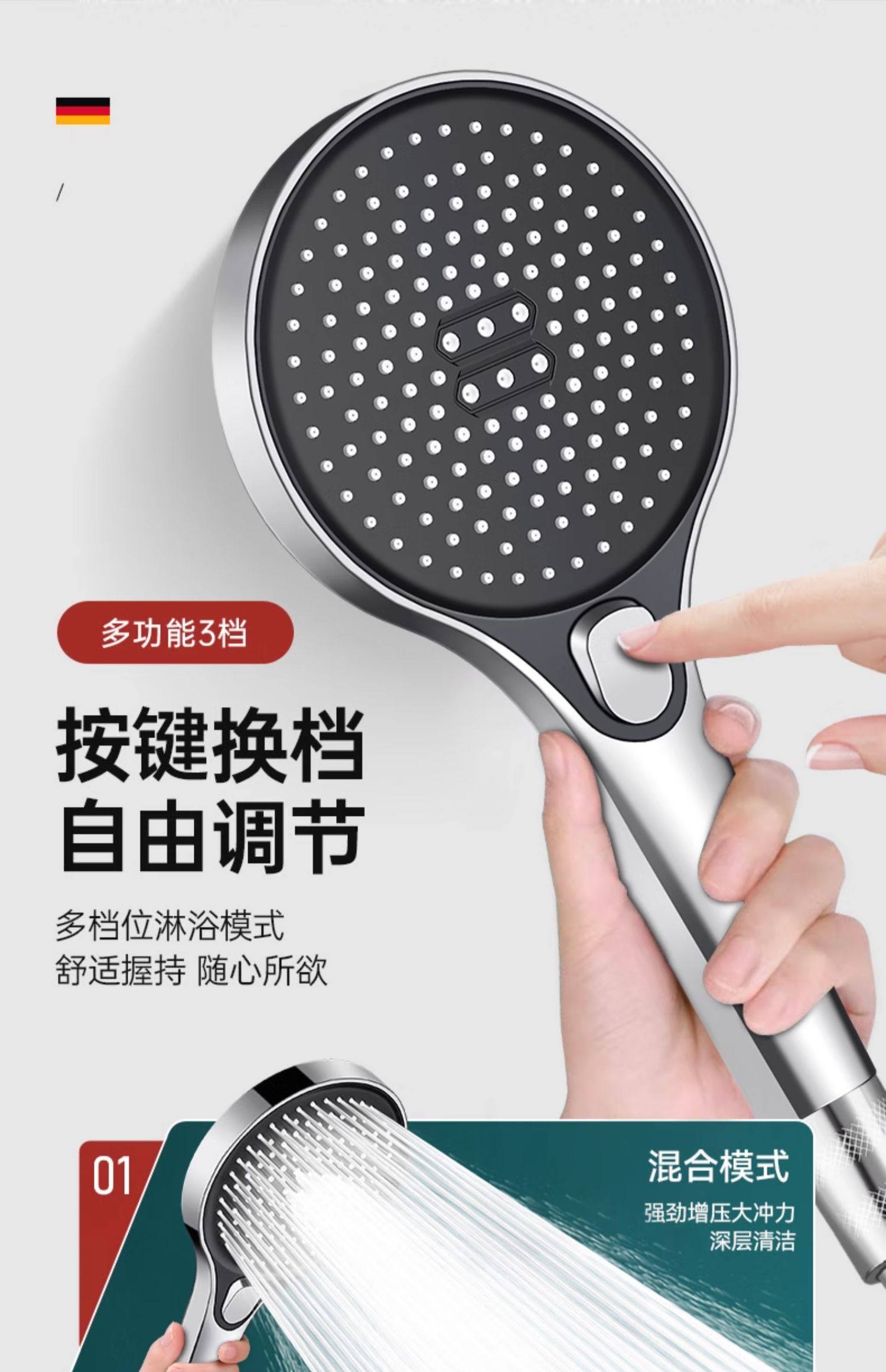 New High Pressure 13cm Shower Head Black 3 Modes Water Saving Spray Nozzle Massage Rainfall Shower Hose Bathroom Accessories Set