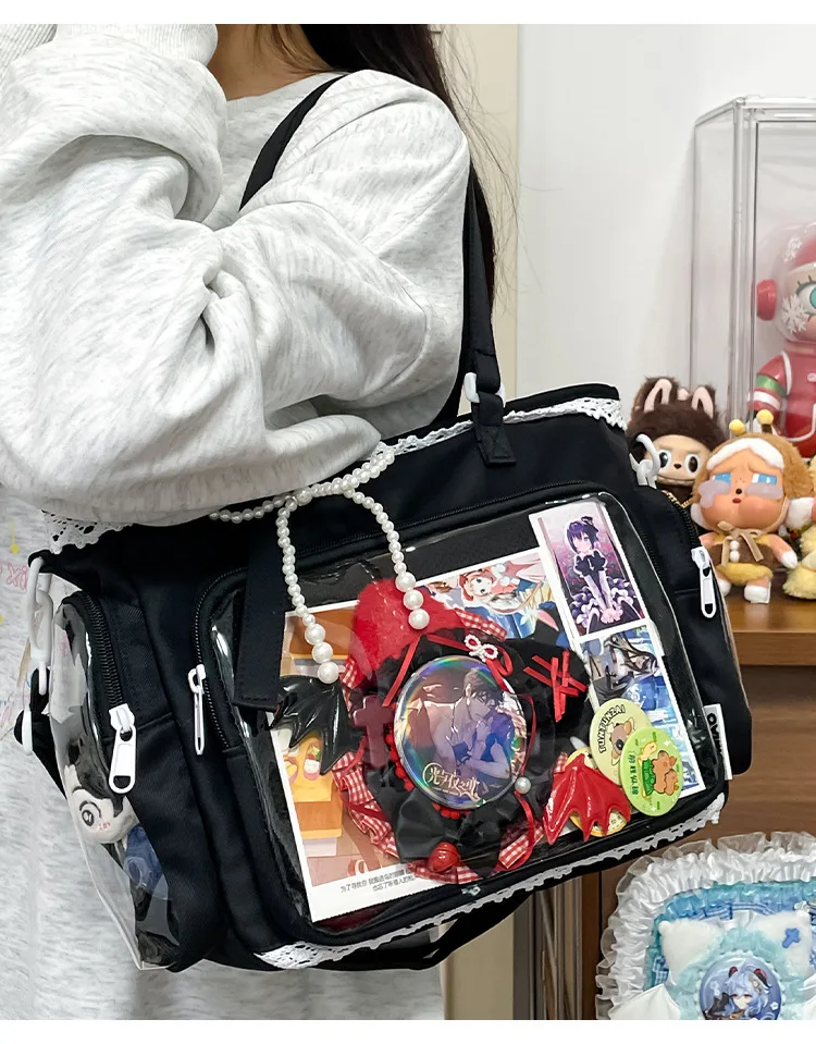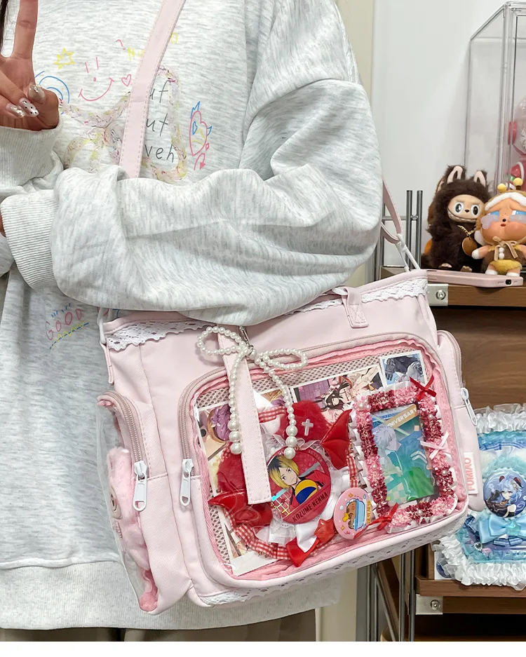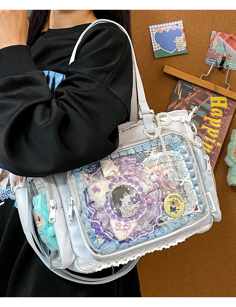 New Japanese Style Transparent Crossbody Bag Cute Candy Color Commuting Shoulder Bag for Girls Simple and Casual Texture Ita Bag