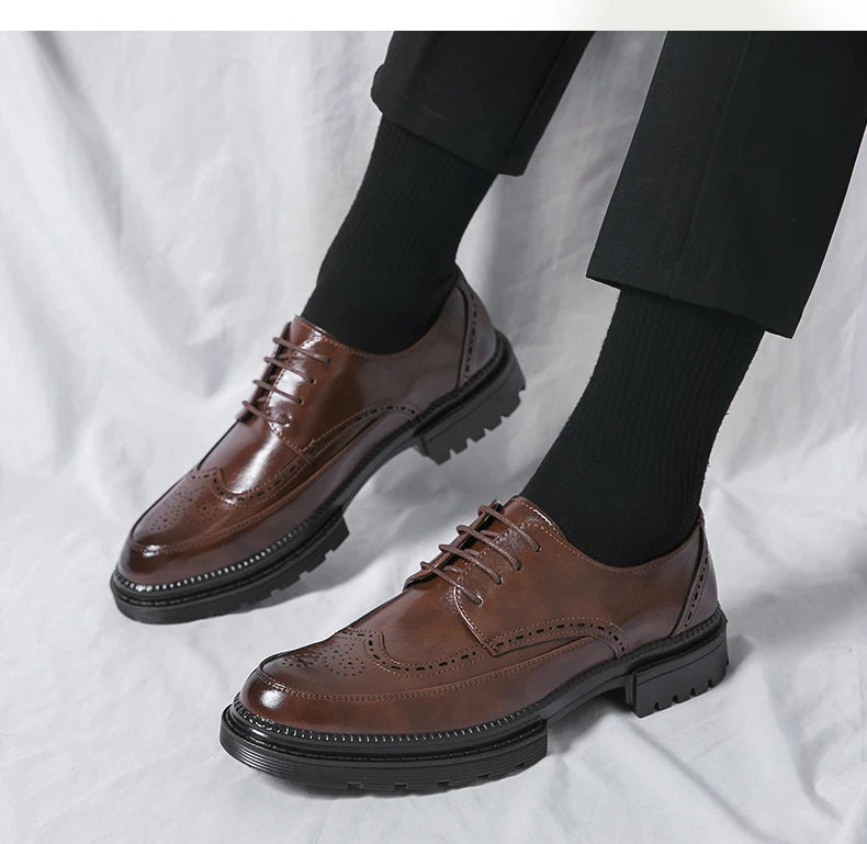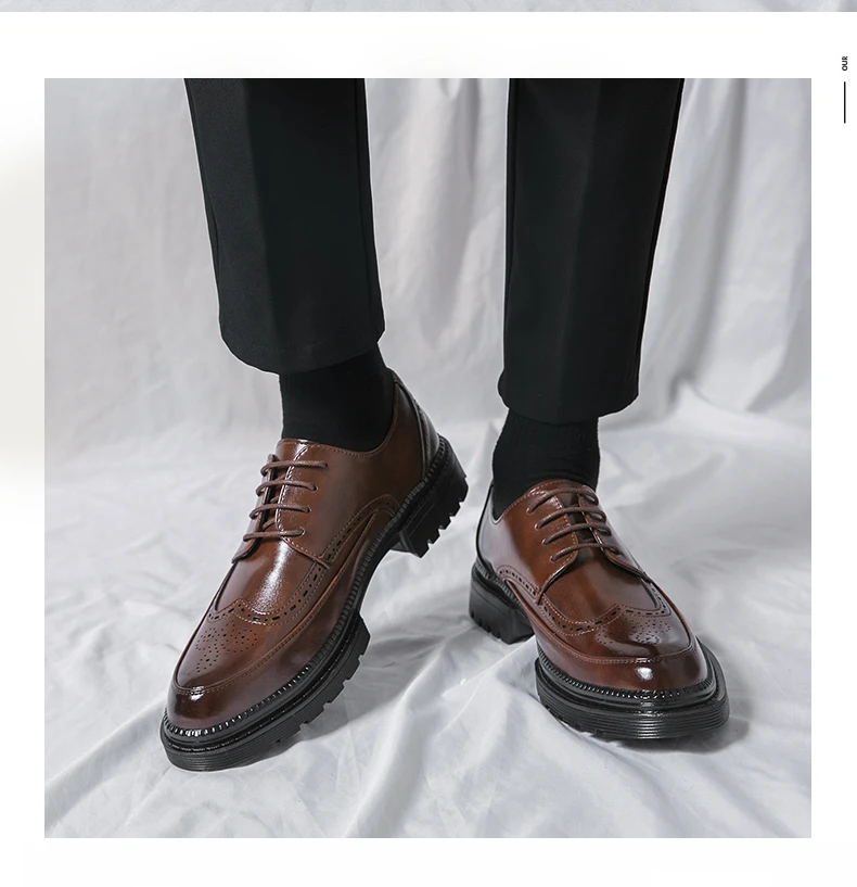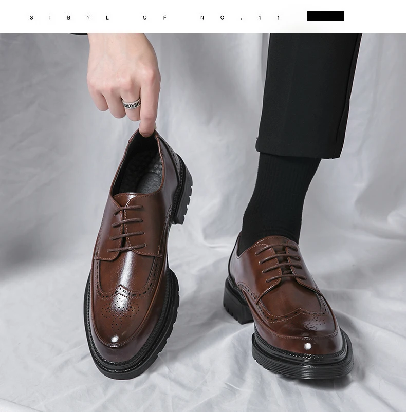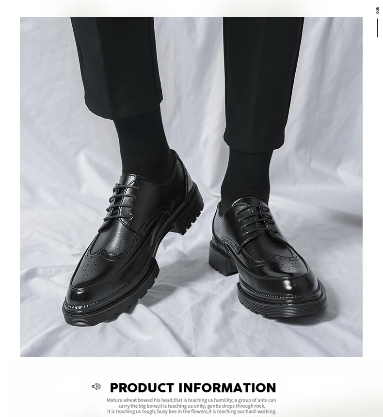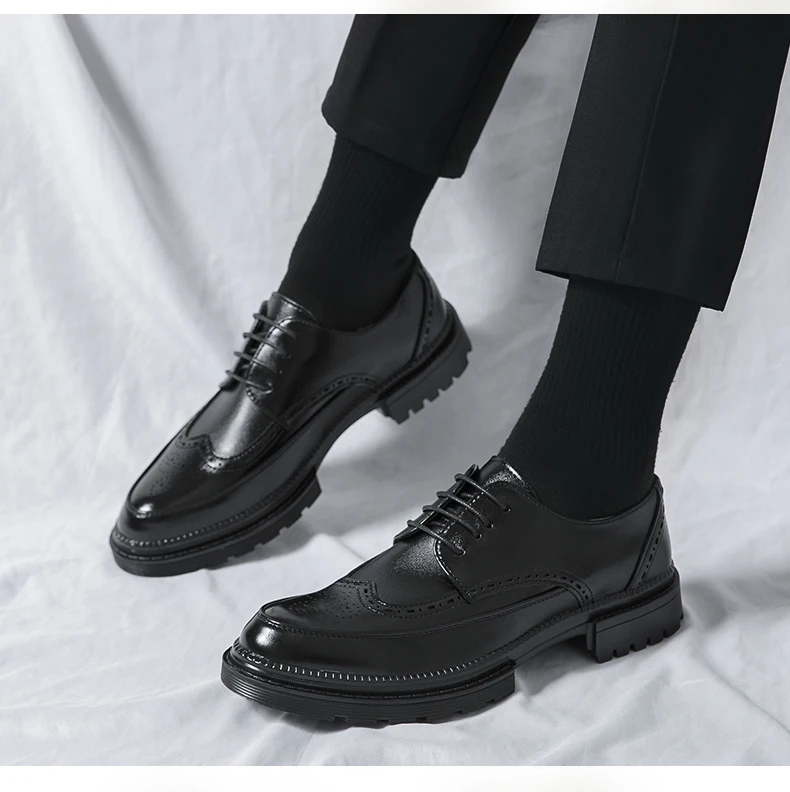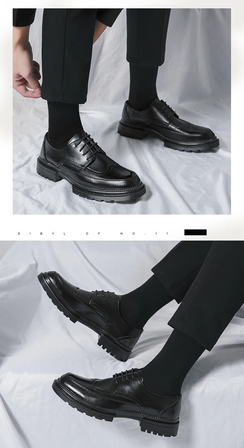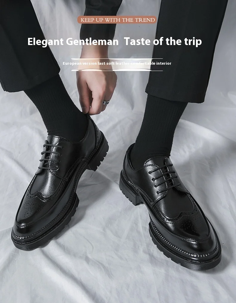 New leather shoes for young men British Brock formal business increase casual black wedding groom lace-up men's shoes