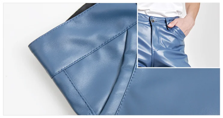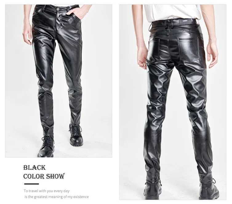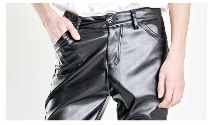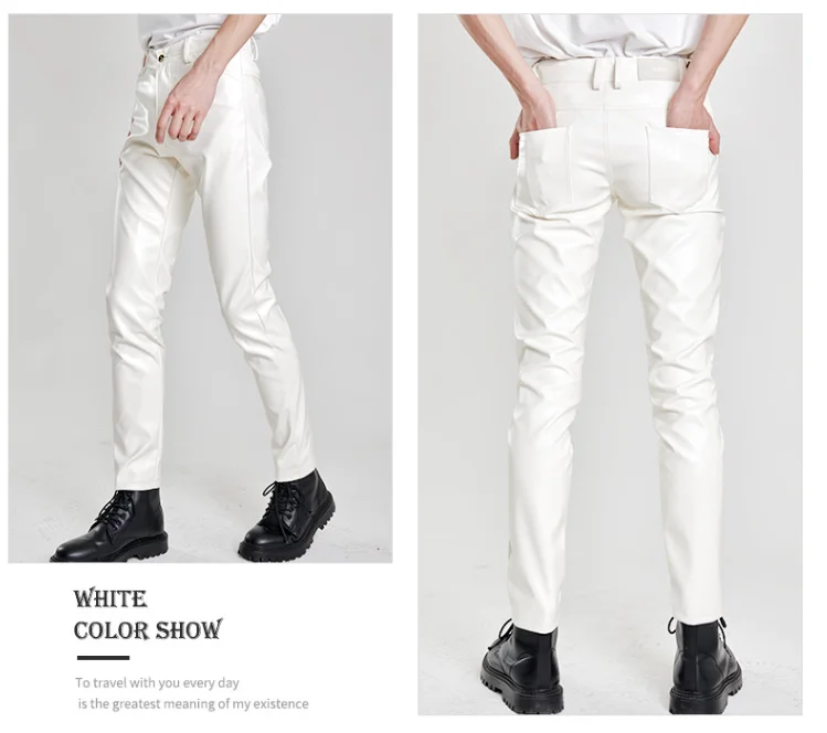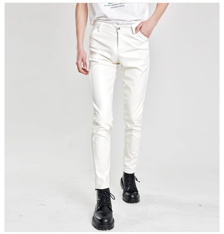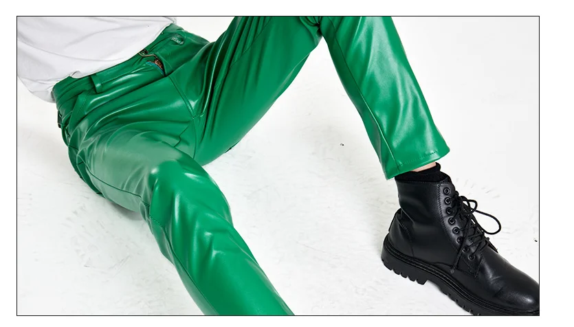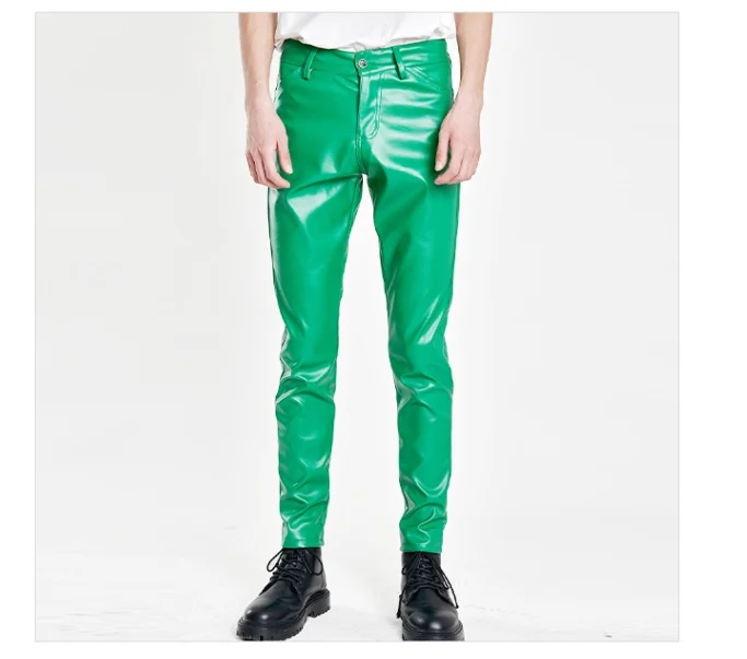 New Men Solid Color Slim Fit Faux Leather Pants Green / White / Black Homme Bar KTV High Street Biker Trousers