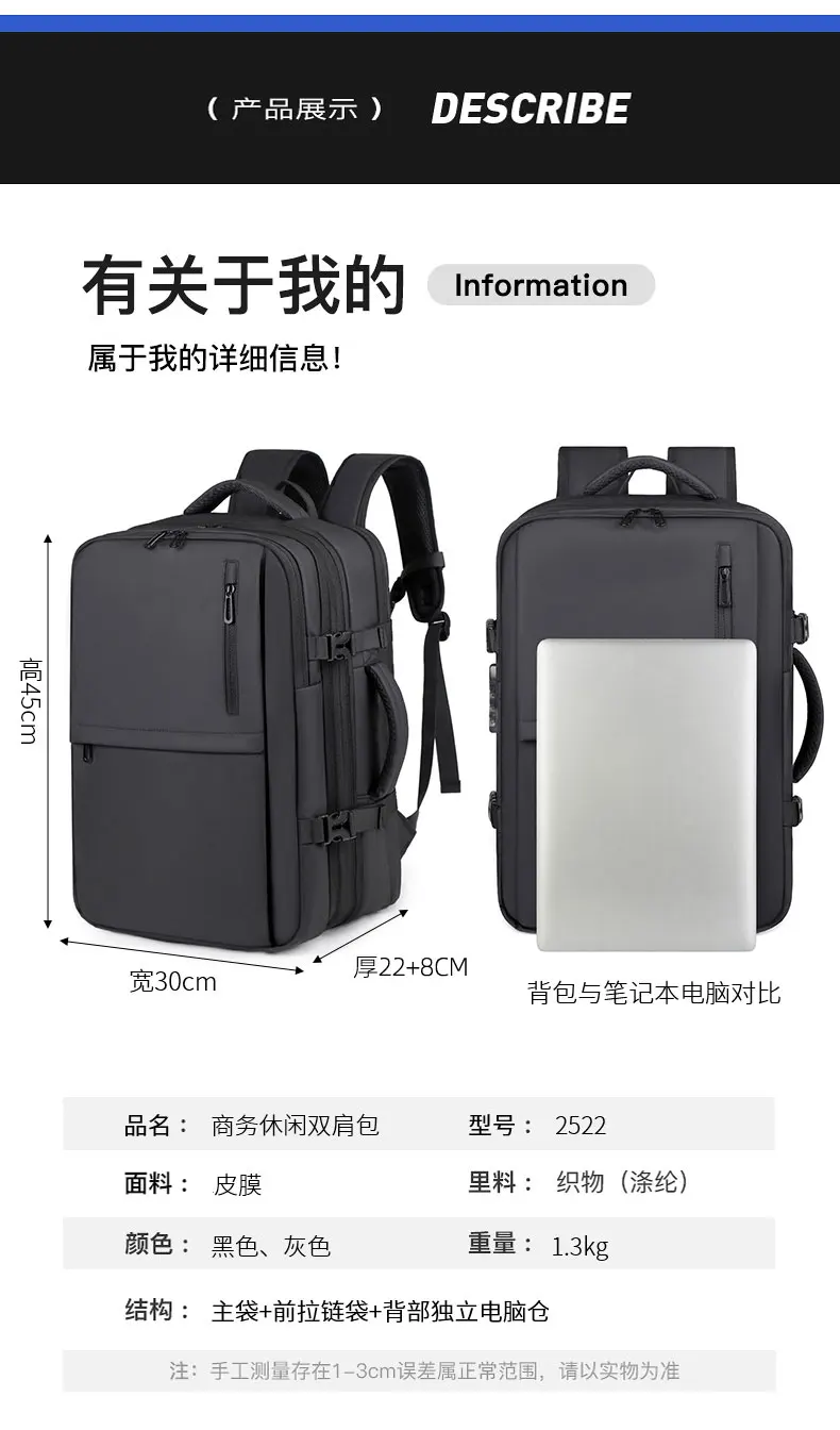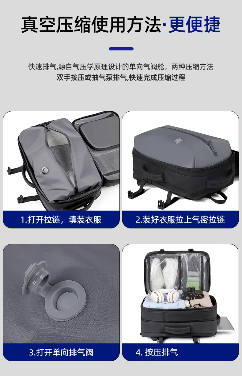 New Men's Backpack Vacuum Compression Backpack Multifunctional Computer Bag Large Capacity Expandable Travel Bag
