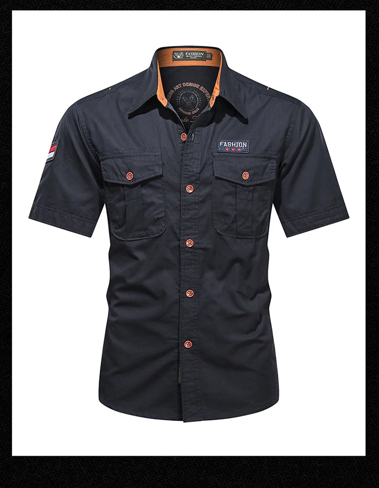 New Men's Casual Shirts Short Sleeve Pure Cotton Shirt Male Solid Oversized Military Cargo Shirts Men Clothing Shirt 5XL A2F168