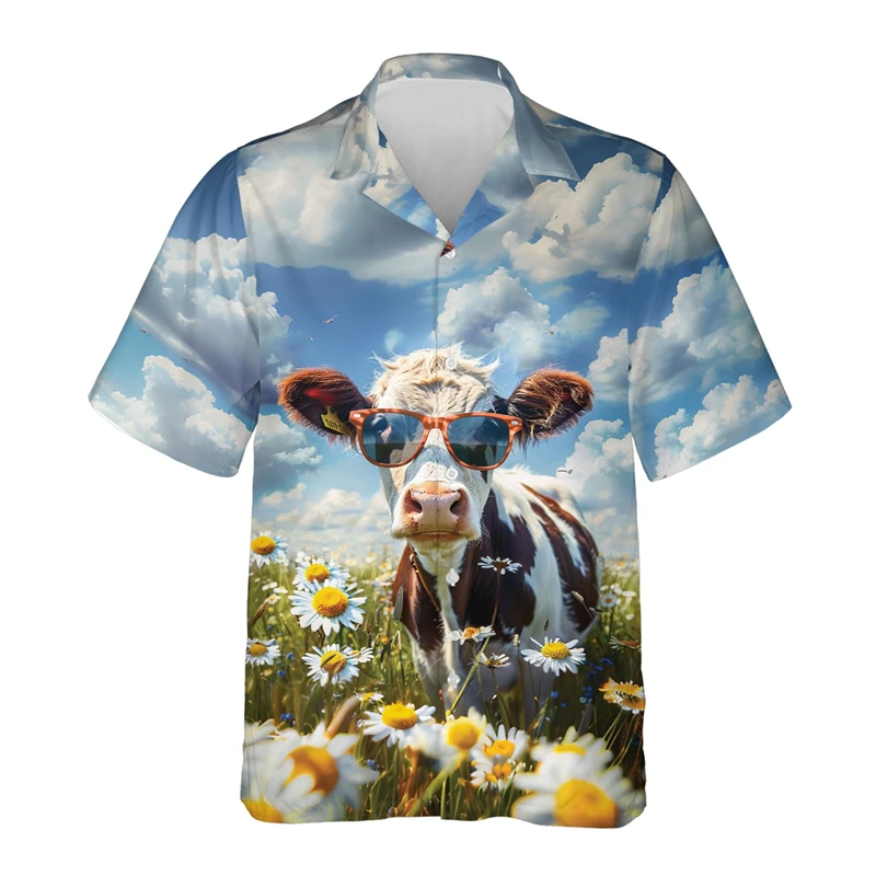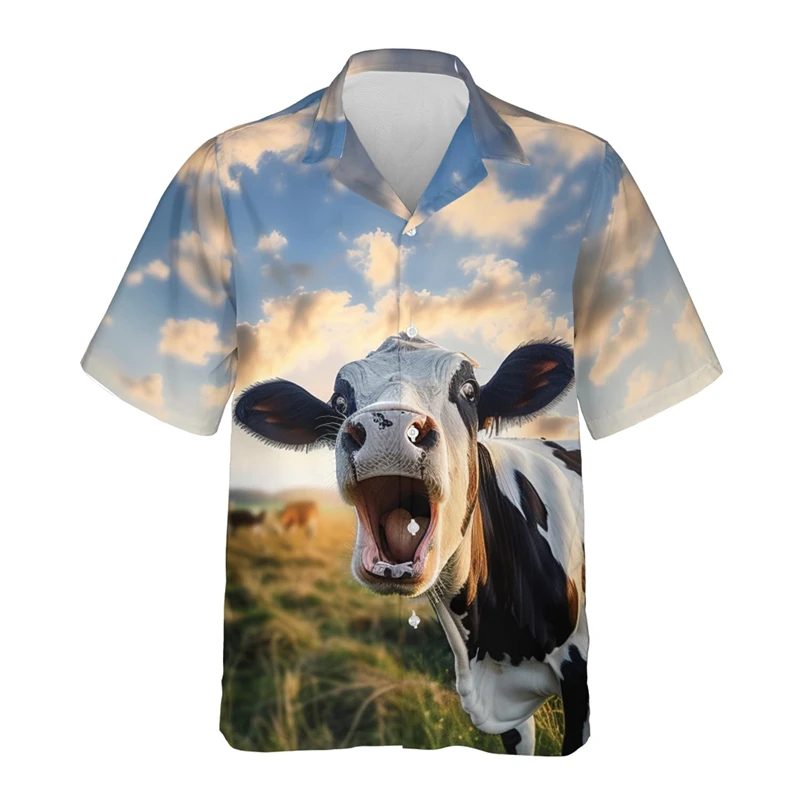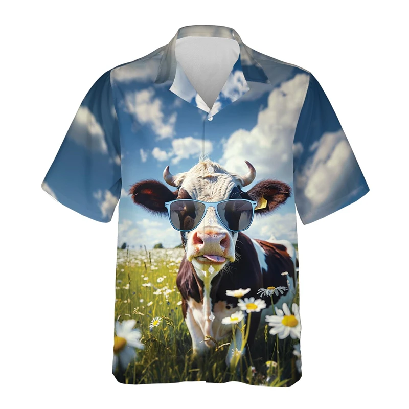 New Men's Shirts Hawaii Farm Style Animal Pattern 2025 Short Sleeve Aloha Blouse Cow Print Summer Casual Hawaiian Funny Camisa